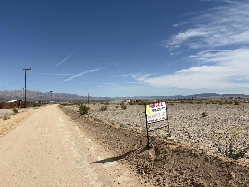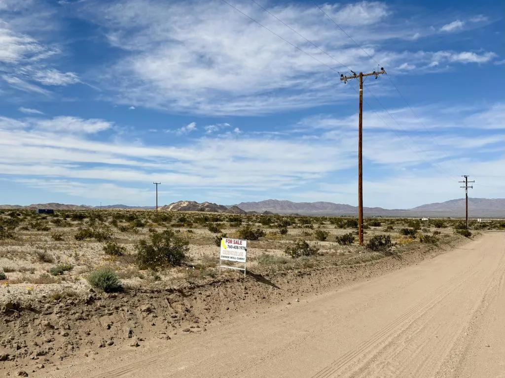 DANBY ROAD, 29 PALMS $14,000.00 - This 2.1 acre parcel is available in the desirable Wonder Valley area of Twentynine Palms. Dimensions 331 X 290 = 95832 sq. ft. The property is ideally located near amenities such as the Wonder Valley Community Center Park with restroom and off roading areas. This level land is ready for construction. Electricity runs along the street. No water. This is the 2nd lot south of Amboy Rd so very near a paved road. Also available are one 2.2 acre parcels the 4th lot south of Amboy Rd. Owner Will Carry Loan with 20% down $2,800.00 a 1st Trust Deed of $11,200.00 @ 7% interest amortized over 5 years payable $221.77 monthly + $15.00 monthly loan service fee. DIRECTIONS: From Downtown 29 Palms go east on Amboy Road about 8 miles to where Community Center Park is go just past it to right on Danby Road. APN0625-372-02-0000.