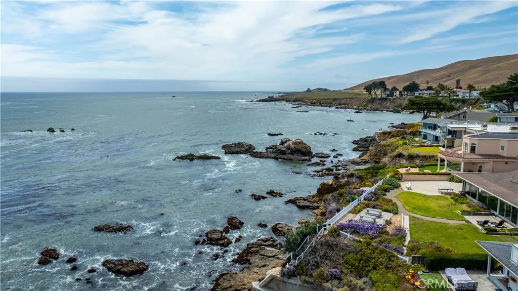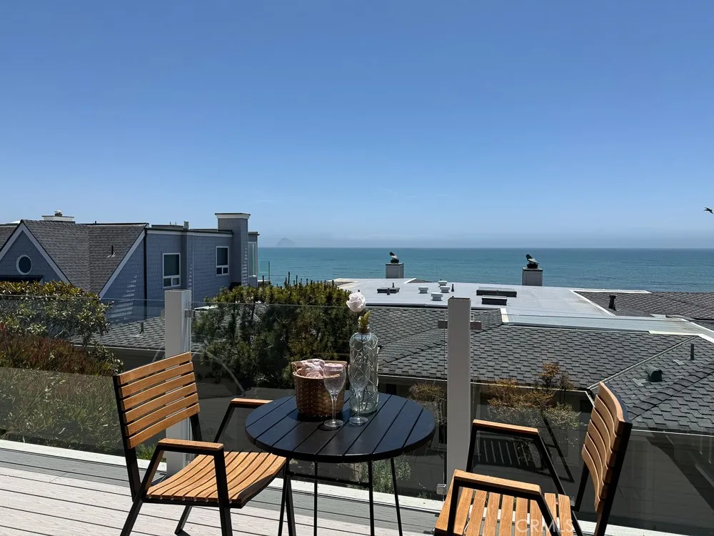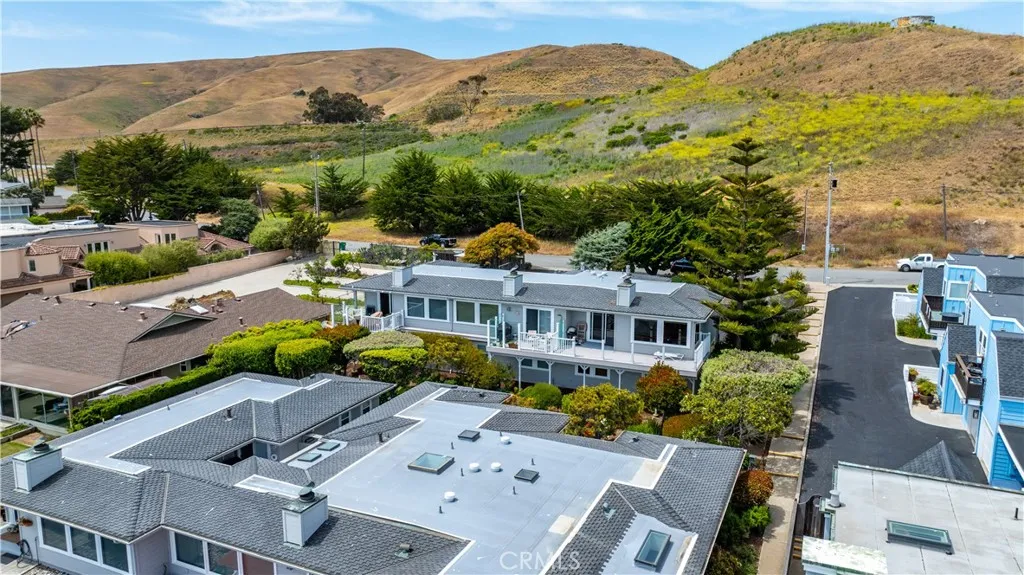 Enjoy some of the best views along Estero Bay, from the Cayucos Pier to Morro Rock, Montana de Oro, and beyond. This updated coastal condo is move-in ready, (ASK ABOUT KITCHEN PLANS) -- nestled along the pristine coastline north of downtown Cayucos in a six-unit complex. Watch the amazing SLO County sunsets, migrating whales, and ocean life—all right from the comforts of home. This two-story end unit maximizes window light without adjoining neighbors to the south and offers a private entrance with established landscaping. Entering the home, an open staircase leads up to southwest-facing, wall-to-wall windows in the open living and dining area, with the upper floor perched up above the neighboring condo rooflines. The large private deck adds outdoor living space with new glass panels to highlight the amazing coastal views. Upstairs you'll find a stately gas fireplace, cozy kitchen with views of Morro Rock, bar seating, a large pantry/linen closet, and full bathroom. There are two large bedrooms on the ground floor with ample closets, lots of additional hallway storage, full bathroom with modern upgrades, and indoor access to the attached garage, with room for a small vehicle, EV charger, and backup generator plus an additional assigned parking space in the private community lot. Call Cayucos home--close to many charming and relaxing coastal attractions, the Cayucos Pier, newly renovated Cayucos Landing Vets Hall, shops, restaurants, and the trailhead for Estero Bluffs State Park.