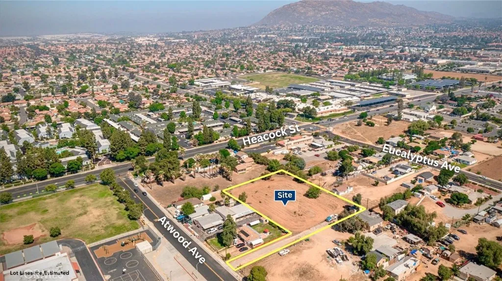 Flat and buildable 1.07 acre lot in a growing area of Moreno Valley. Zoned for residential development for up to 15 UNITS PER ACRE! Ideal for small or private developers to entitle and force appreciation, or build out long lasting wealth in a market that is desperate for more housing. You can build to rent or sell some or all of the units depending on your vision. Many opportunities as you can do detached townhome style or attached multifamily and/or condominium style... the choice is yours subject to city approval. All utilities nearby and accessible on Atwood Ave. This property is across the street from Sunnymead Elementary School and a couple minutes from 60 FWY and many Shopping, Restaurants, and Entertainment. Additionally, Senate Bill 684 (SB 684), also known as the "Starter Home Revitalization Act", allows for streamlined ministerial approval of housing developments with 10 or fewer units on urban lots under 5 acres. This property consists of TWO PARCELS making it easier and faster if you wanted to get between 11 and 15 units - just do 6-7 units on each parcel (theoretically). Local agencies must approve or deny completed applications within 60 days of receipt. This bill was enacted in 2023 and took effect January 1, 2024. SB 684 simplifies the approval process, eliminating the need for public hearings or discretionary reviews. BUYERS MUST VERIFY all marketing information, zoning, and development potential with the City to satisfy themselves.