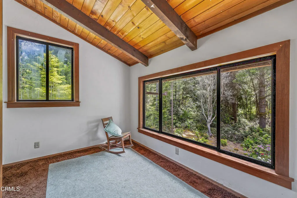 Ideal location at the edge of an enchanting forest, a spacious home awaits, offering a peaceful retreat in one of Mendocino's most unique natural settings. With approximately 1,800 square feet of living space, this private residence is wrapped in classic redwood siding and surrounded by vibrant, mature rhododendrons that bring bursts of color in spring. Step inside to find a cozy open-concept layout where the living room, dining area, and kitchen flow together seamlessly--perfect for gatherings or quiet evenings by the fireplace. The living room features stunning old-growth redwood paneling, adding warmth, character, and a true sense of place.Enjoy the outdoors from two spacious decks--ideal for relaxing or entertaining, offering an opportunity to make it your own. An attached garage provides convenience and storage, and the surrounding forested privacy offers a true sense of seclusion while still being just minutes from Mendocino village and conveniently near theschools.