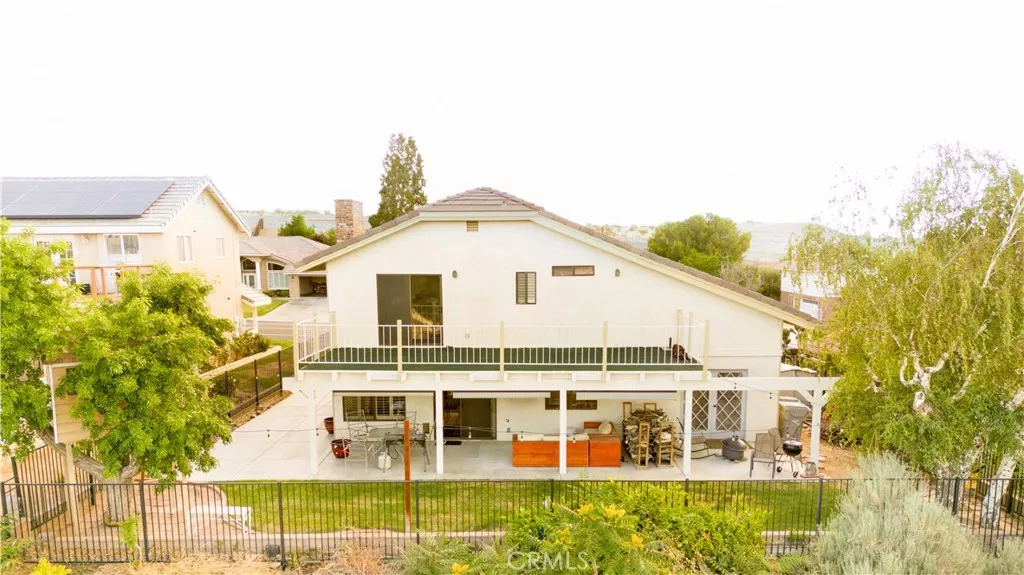 PRICE IMPROVEMENT WITH PAID OFF SOLAR+TESLA BATTERY (POWERWALL)!! - Welcome to SPRING VALLEY LAKE, the jewel of the high desert! This well-kept home offers LAKE VIEWS, 4 bedrooms and 2 baths upstairs, and a 1/2 bath downstairs. The spacious primary bedroom leads out to a large BALCONY overlooking the landscaped backyard and peaceful lake views. All bedrooms offer plush carpet, and the downstairs feature upgraded laminate wood floors and beautiful brick flooring. The well appointed kitchen comes with a newer, easy to clean cooktop and hood, plenty of storage space, a functional hanging pot rack, large quartz countertops, and other stainless steel appliances. Upgraded fixtures throughout. Plantation-shuttered doors open to a welcoming backyard complete with a covered patio, newly poured concrete floors, lake views, lush grass, fruit trees, a treehouse and a tire swing! The side of the house offers large parking area (wide enough for an RV/Boat!) with direct access to the drive