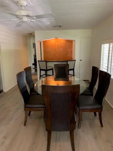 Welcome to Date Palm Country Club for the over 55 years old residents, providing Golf, Tennis, Pickle Ball, three pools, Gym, Sauna, Library, community room for social events and Pavilion for Table tennis, , pool tables and private events/gatherings. Doggie park for larger and small pets Also dog walking areas. DPCC between Palm Springs and Palm Desert is perfectly situated to take advantage of first class shopping, dining, cultural events and medical facilities. Designed to resemble a sub division rather than a Mobile Home Park is home to full and part time residents. Nick's Bistro is a short walk or golf cart drive away for evening drinks and dining.This home overlooks the 1st fairway and mountains beyond. The living area opens to the expansive private patio to view beautiful sunsets.laminate flooring in main Living areas. Newer Carpet in bedrooms. Wet bar adjacent to family room. Plantation shutters in Living areas. Ceiling fans in Dinning area and family room. laminate counter tops in Kitchen. 4 burner gas range plus Microwave.. Both bathrooms have walk-in shower. Roof recently recoated. Newer A/C unit. This home has been very well maintained and awaits your own personal touch.