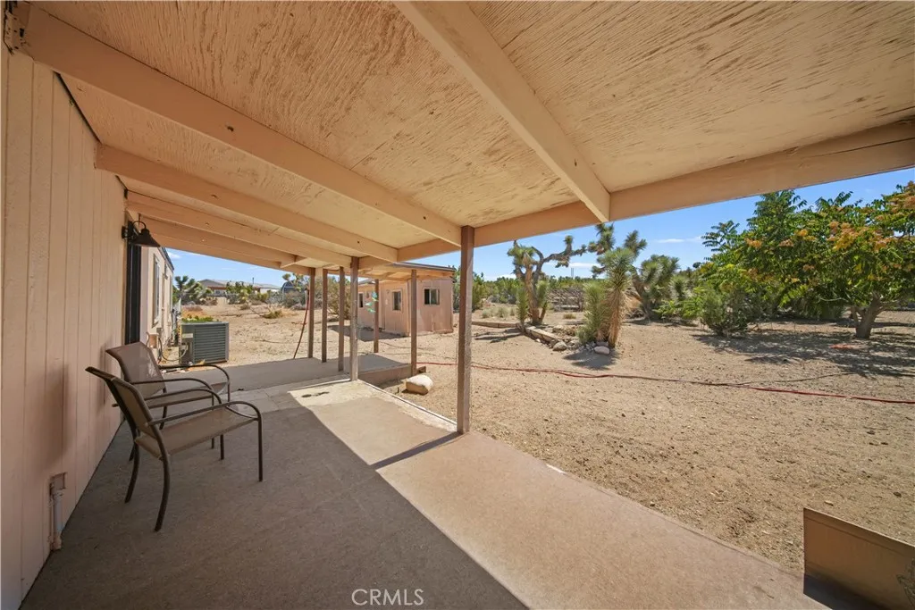 Located on the highly desirable South side of Pinon Hills, this spacious and serene home offers approximately 2.5 acres of land to call your own with stunning north-facing views and breathtaking sunset views. Enter the home from the large front view deck, perfect for relaxing or enjoying meals outdoors as the sky glows at dusk. Inside, you're greeted by a generous living room with soaring vaulted ceilings and a cozy wood-burning stove framed by a striking floor-to-ceiling rock fireplace. This home features a brand new HVAC system, Furnace, Wood Flooring, Paid-off Solar, Dual-Pane Windows, and Stunning Chicken Coops. The Formal Dining Room features beautiful Bay windows that bathe the space in natural light. The adjacent upgraded kitchen features granite countertops, a tile backsplash, a central cooking island, and white cabinetry with upgraded hardware. Just off the kitchen is a spacious laundry room and additional storage. The bedroom wing of the home includes a large master suite with an oversized en-suite bathroom featuring a soaking tub, separate walk-in shower, vanity, and a large walk-in closet. The secondary bedrooms include large closets with sliding doors and easy access to a full hallway bathroom. Additional highlights include new roofing, detached double garage with electric doors, storage room next to the garage and additional backyard shed, south-facing covered deck off the laundry room, fenced property, permanent foundation, owned propane tank. Property is zoned and ready for an ADU (Accessory Dwelling Unit) — ideal for multigenerational living, rental income, or a home office. Bring your toys, animals, and garden tools — there's plenty of space to roam, grow your own food, and enjoy a peaceful, self-sufficient lifestyle. All just minutes from the mountain community of Wrightwood with skiing, snowboarding, and summer recreation. Nearby lakes include Jackson Lake, Lake Gregory, and Silverwood Lake. Also close to El Mirage dry lake bed for off-road fun. Convenient access to Hwy 138 and I-15 for commuting to the Inland Empire or Palmdale and Antelope Valley. Located in the Snowline School District, with excellent resources for homeschooling families.