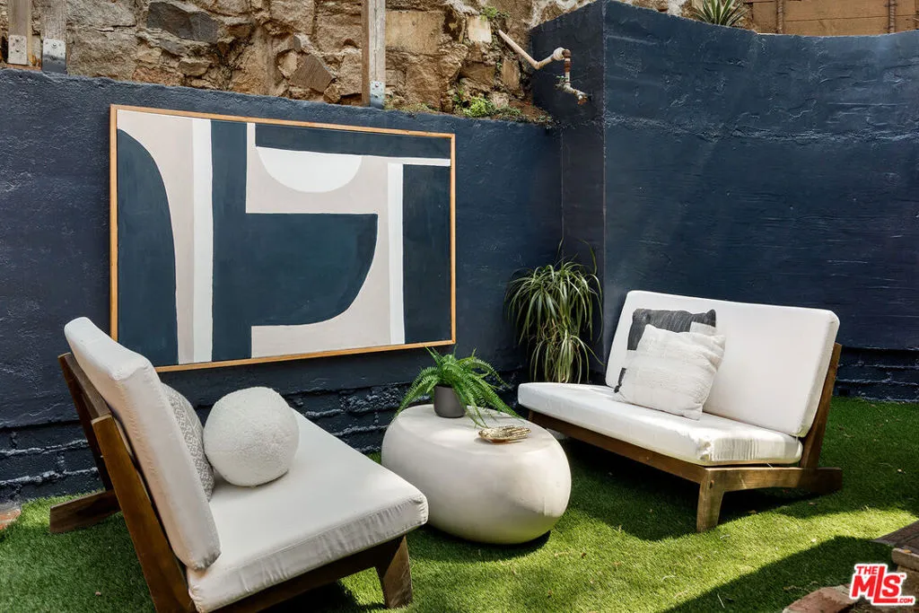 This home features a large bedroom. Two bedrooms were combined. The public records shows 2 bedrooms. Nestled off Lookout Mountain Avenue, this cottage offers a private sanctuary with breathtaking panoramic canyon views. Renovated to the studs in 2019, it boasts meticulous attention to detail and energy efficiency. From the fireproof French standing seam metal roof and fiber cement siding with extra protective dense glass underlayment, to the high-efficiency split AC and heat system, upgraded modern 200 AMP electrical, copper plumbing, and a whole-home water filtration system, this home is equipped with the latest technology. The kitchen is a chef's dream, featuring carrera marble countertops, a Verona dual range, and a brass pot filler. The oversized double-paned Western and Milgard windows in the nearby living room flood the space with natural light, while a stylish marble gas fireplace adds ambiance. Conveniently tucked away in a corner is a Bosch washer and dryer, and a Rinnai tankless hot water heater provides efficient and limitless hot water. Step outside to a grassy area, perfect for stargazing, intimate conversations with friends, and soaking up the sun on the sundeck. After a long day, unwind in the new Jacuzzi spa before retiring to your Wonderland hideaway in the city.