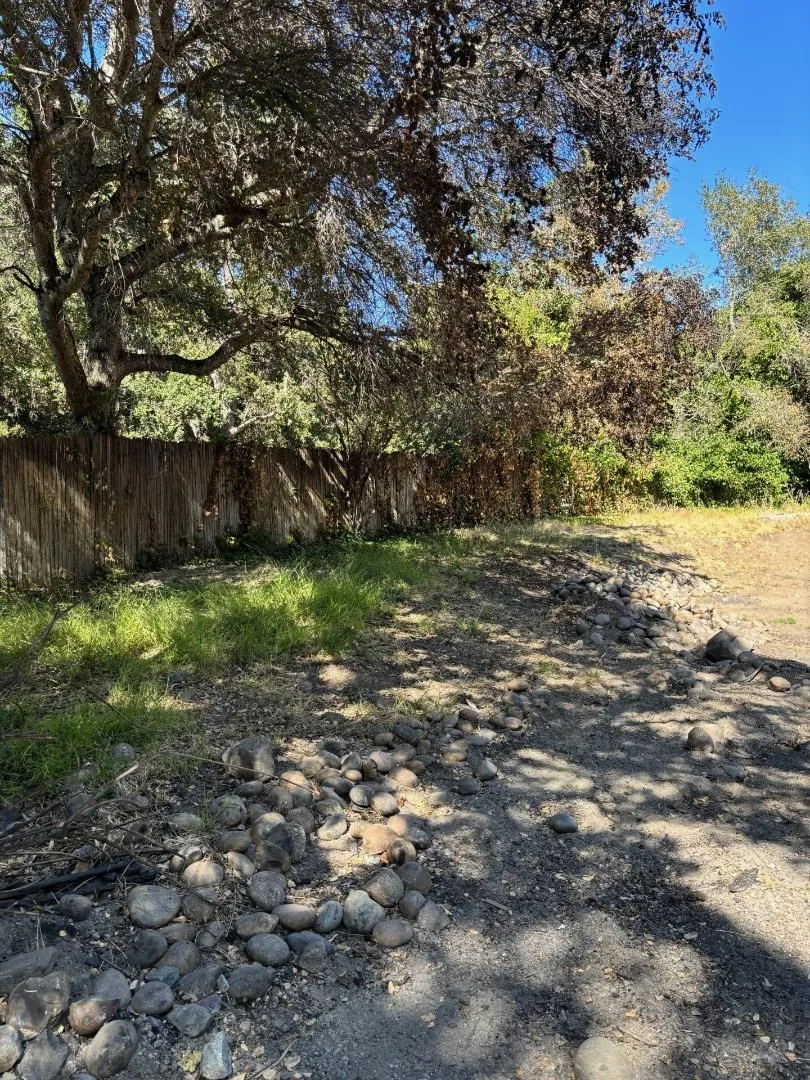 Beautiful, sunny and serene describes this easily buildable 1.27 acre lot along coveted Corral de Tierra. House foundation and garage slab are still standing and look to be in good condition after house burned down in April, 2025. This foundation supported a 3 bedroom, 2 bathroom, 1,324 sq. ft. single-level house with a 20'x26' garage. Small green shed can be seen through the lush trees and thick vegetation on hillside behind. Great opportunity to build the home of your dreams in such a lovely location. Circular dirt driveway in front for ease of parking. Septic, water tank propane tank and well seem to have not been affected by fire. Lot extends approximately 3/4 of the way up the hillside behind and there is a seasonal creek that runs in the gully between the yard and the hillside.
