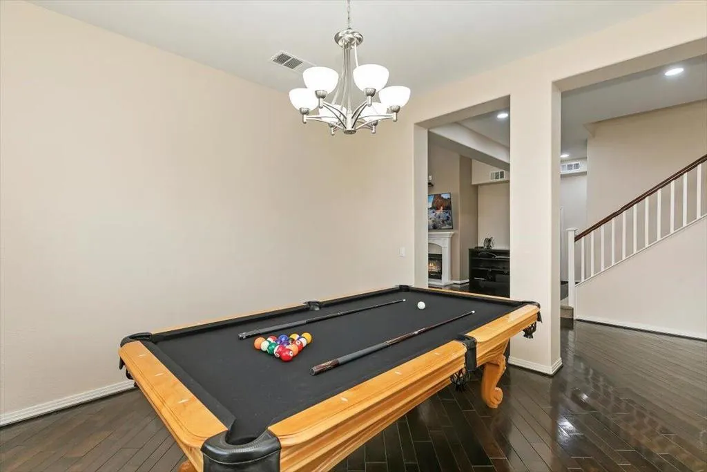 Welcome to this beautifully upgraded 4 bedroom, 3 bathroom Palazzo home that truly checks all the boxes! Step inside to find rich wood flooring throughout and a spacious, open-concept layout perfect for entertaining. The gourmet kitchen features granite countertops, a full tile backsplash, stainless steel appliances, and ample cabinet space.Retreat to the expansive backyard, your private oasis, complete with a sparkling pool, raised spa, and plenty of room for outdoor living. Granite surfaces continue into the bathrooms, adding a touch of luxury to every corner of the home. This home is a must-see! Schedule your private tour today and fall in love with everything it has to offer. VA Loan is assumable by New Buyer.