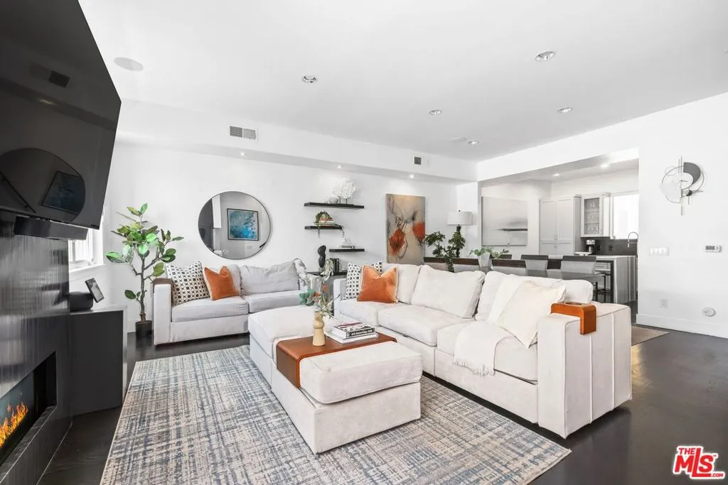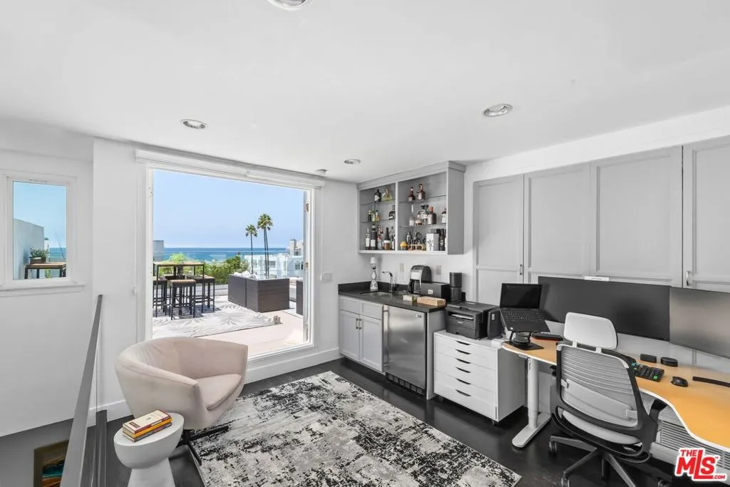 Just steps from the sand, this fully remodeled town home in the heart of Marina del Rey offers the ultimate blend of coastal living and modern design. With soaring ceilings, wide-plank wood floors, and floor-to-ceiling windows, the space feels airy and bright from the moment you enter. The main living area centers around a dramatic 250-gallon saltwater aquarium and a sleek fireplace, creating a striking focal point. The chef's kitchen is outfitted with high-end stainless steel appliances, custom cabinetry, and a stunning waterfall island perfect for entertaining. Two spacious bedrooms include spa-like en-suite bathrooms, while the upstairs loft with its own kitchenette offers flexibility as a home office, guest suite, gym, or creative space. The private rooftop deck is a true showstopper, with sweeping ocean, mountain, and city views ideal for relaxing, entertaining, or catching nightly sunsets. Other features include smart-home integration, a second fireplace in the primary suite, and two-car garage parking. All of this just moments from Venice, Abbot Kinney, and the best of Silicon Beach. Rarely does a property of this caliber, style, and location become available an exceptional opportunity in one of LA's most sought-after coastal enclaves.