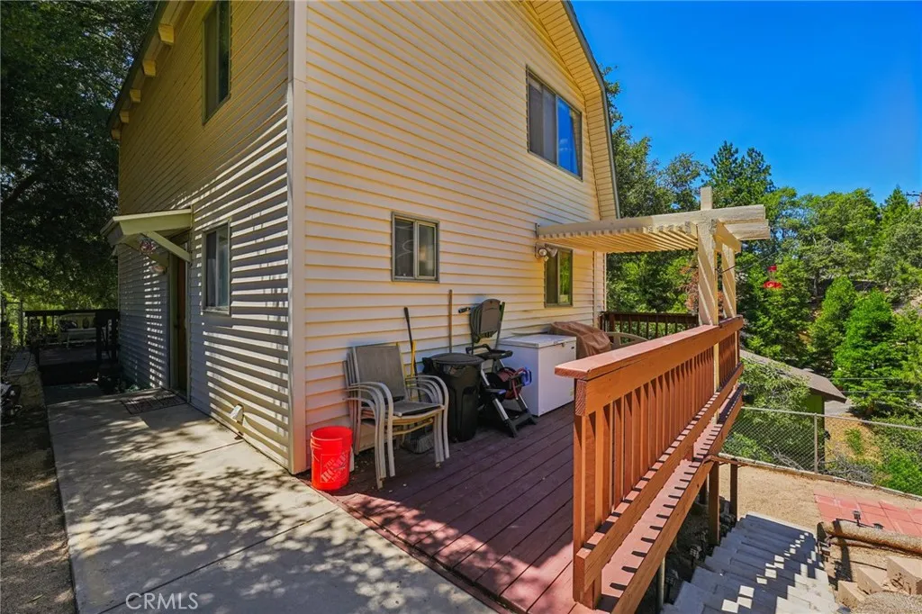 Welcome to 463 Delle Dr in Crestline—a mountain home with the perfect balance of comfort, charm, and real-life usability. Just minutes from Lake Gregory, this 2-bedroom, 1.5-bath property features an open-concept living area with tongue-and-groove wood ceilings, a classic rock fireplace, and abundant natural light thanks to its sunny southern exposure. Step out onto the oversized entertaining deck and take in sweeping ridge and mountain views—ideal for hosting friends, morning coffee, or a quiet evening with a glass of something good. The fenced backyard offers a rare combo of space and versatility—plenty of room for gardening, lounging in a hammock, or letting the dog run free while you debate whether to build that studio or ADU someday. Whether you're working remotely surrounded by trees, or escaping the city for weekend getaways, this home makes it easy to unwind and stay connected. Located in a peaceful, wooded setting, the home also puts you just a short drive from Crestline’s town center shops in one direction, and the award-winning Sycamore Ranch Vineyard & Winery in the other. A recently expanded driveway provides generous, mostly level parking, and the home’s low-maintenance exterior, washer/dryer hookups, and tile countertops make everyday life refreshingly simple. Full-time residence, creative retreat, or weekend basecamp—463 Delle Dr fits the lifestyle you’ve actually been looking for.