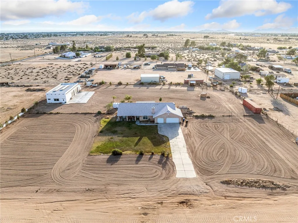 Tucked away in the quiet outskirts of Apple Valley, this 2,000 sq ft desert gem sits on 2.3 acres of wide-open space, just off the pavement, with room to roam and views that’ll stop you in your tracks & a Massive 1950 square foot additional detached garage to park all your toys and projects in. This big ol garage has its very own bathroom, septic system, is ADU ready & it has solar! In this beautiful home you'll find a well-laid-out 4-bedroom, 2.5-bath home with a smart split floor plan—master suite on one side, the other three bedrooms on the other. Vaulted ceilings give the whole place an open, airy vibe. The indoor laundry room is tucked just off the attached 3-car garage (yep, with its own half bath—super convenient!). The front porch on this beauty is made for rocking chairs, slow mornings & a nice cup of coffee, while the shaded back patio is perfect for BBQs and watching the sun dip behind the mountains. Got animals? Bring 'em all! There's space for livestock, plus electric already run to the hay shed and storage container. Hosting guests with RVs? We’ve got hookups ready to go. Whether you’ve got toys, tools, or big ol' dreams— This home is ready for it all. Big skies, mountain views, and the kind of peace that only the desert can offer. This one’s got soul—Come see it for yourself!