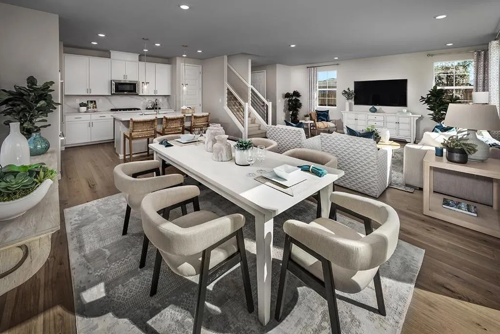 Discover the perfect blend of functionality and style in this brand-new move-in ready home. Entertain in the bright and spacious family area with sliding glass doors leading to your own private backyard. Prepare meals in your beautiful kitchen complete with granite countertops, an island with pendant lighting, and a walk-in pantry. Upstairs, a versatile loft awaits movie nights. Relax in the large primary bedroom and a spa-like primary bath with a walk-in shower and dual vanity sinks. Luxurious vinyl plank flooring at entry, family, dining and kitchen areas. Other features include 40-amp pre-wire electric vehicle charging station and a solar energy system (lease or purchase required), limited 10-year warranty. Model photos shown.