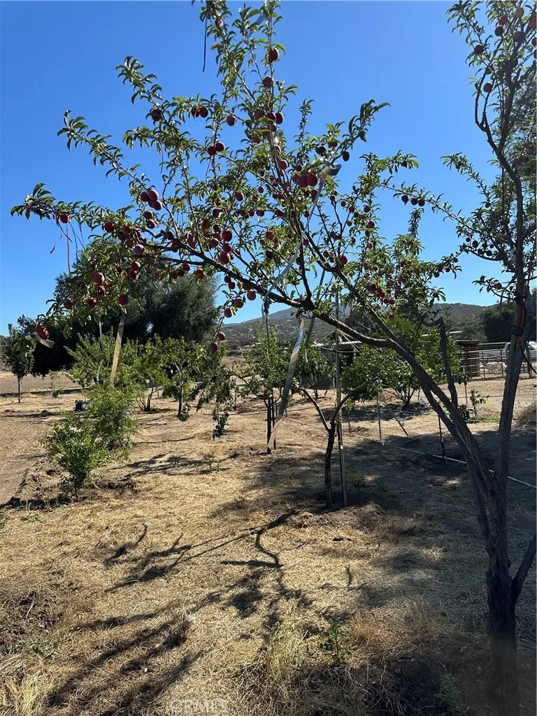Flat to very gentle rolling 21.52 acre with horse facilities already set up, has 3/8 of a mile unraveled horse exercise round horse track, family fruit orchard with 80 trees which include Pear trees, Nectarine Trees, Lemon Trees, Peach Trees, Pomegranate Boshes, Crape Vines, ect. Loaded with 18 oak trees, has out door kitchen, multiple pens for animals & horses, seller will consider leaving his travel trailer for an additional price. Has huge well with 5000 gallon holding tank, power, septic, need cell phone. Parcel is located between Temecula & Hemet, and only a few short minutes to shopping in either city. Close to Diamond Valley Lake, Lake Skinner, Vail Lake, Pechanga or Soboba Casino, just outside Temecula Valley Vineyards and Wineries, only 7 miles to Dominogoni Parkway which takes you to Winchester Highway 79, 215 Freeway, 15 Freeway, and also close to Winchester, Menifee, Murrieta, Aguanga, San Diego & Los Angels are close also.
