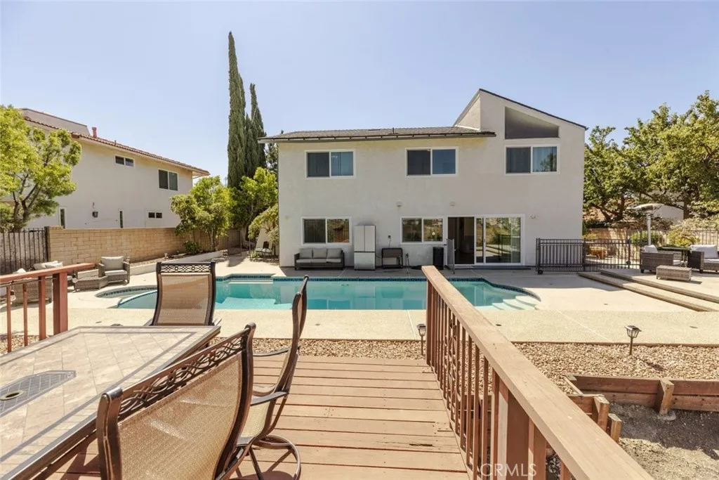 Welcome to 11801 Thunderbird Ave, a beautifully updated two-story single-family home located in the highly sought-after Porter Ranch community. Set on an expansive 13,959 sq ft lot, this 2,412 sq ft residence blends modern luxury, energy efficiency, and breathtaking city views. Inside, you will find a light-filled, open-concept living space with high ceilings, custom cabinetry, and luxurious finishes throughout. The chef’s kitchen features new stainless steel appliances, granite countertops, and plenty of space for entertaining. Enjoy seamless indoor-outdoor living with a sparkling, oversized in-ground pool, newly landscaped grounds, and an additional driveway for extra parking. This home is perfect for both intimate gatherings and large celebrations. Equipped with a state-of-the-art smart home system, you can easily control lighting, security, and climate from anywhere. Energy-efficient features ensure comfort and cost savings year-round. Additional highlights include a three-car garage, a spacious layout with elegant design touches, and spectacular city views. The prime location is just minutes from top-rated schools, shopping centers, and entertainment. Don’t miss this rare opportunity to own a fully upgraded home in one of Porter Ranch’s most prestigious neighborhoods. Come experience the perfect balance of modern living and natural beauty.