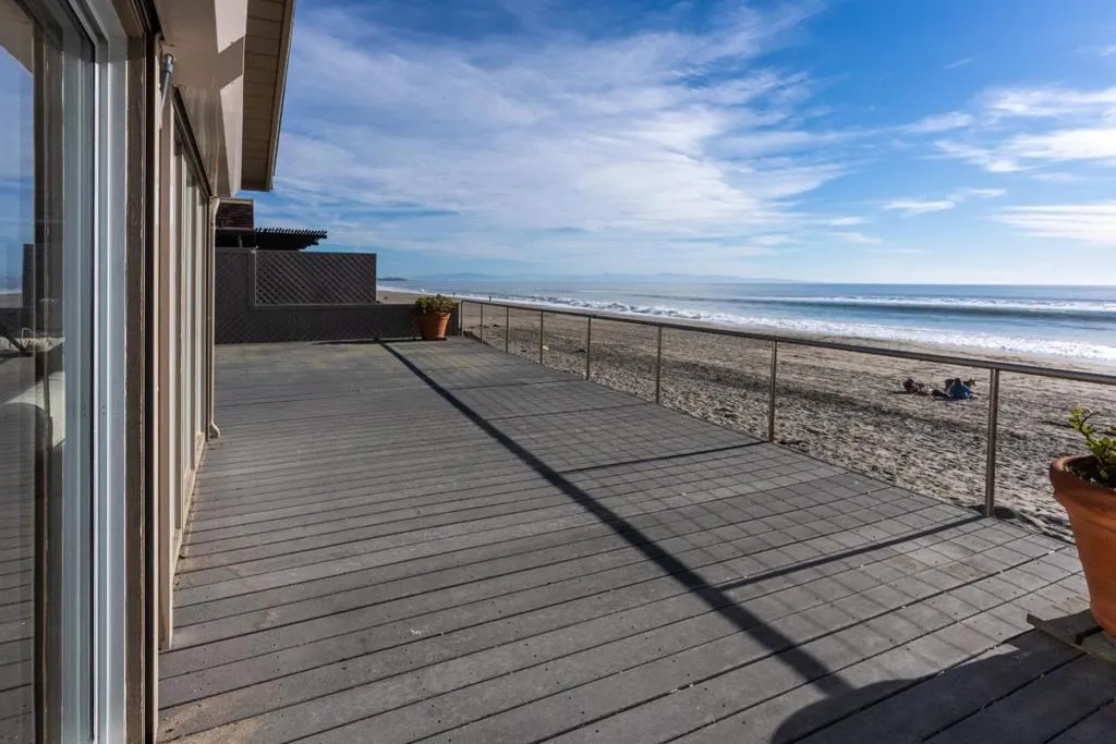 Once in a lifetime opportunity to buy this stunning beachfront home inside the Beach Drive gates. It features panoramic Monterey Bay views from Pebble Beach to Santa Cruz. This bright, spacious 5-bedroom plus a bonus room, 4.5 baths retreat is in the lovely coastal town of Aptos with all its great amenities, including shops and restaurants. This large beachfront haven features nearly a quarter of an acre of land and beach ownership to the mean high tide line. Hear the waves, see the shorebirds, and enjoy direct private access to your own plot of sand next to the magnificent Pacific Ocean. Vaulted ceilings, tasteful decor, and lovely colors are featured in all the rooms. The kitchen features a breakfast bar and Viking appliances. The kitchen family room combination includes a fireplace, multiple sitting and dining areas and a soaring vaulted ceiling and access to the huge deck directly above the beach. 2-bedroom suites enjoy stunning ocean views. Expansive front Trex deck, interior private deck and top-floor private crow's nest deck with 360-degree view adjoining primary bedroom. Large metal tool chest in utility room. Wine fridge. Separate laundry room. Fabulous home to enjoy the breathtaking ocean views and wonderful Aptos coastal lifestyle.