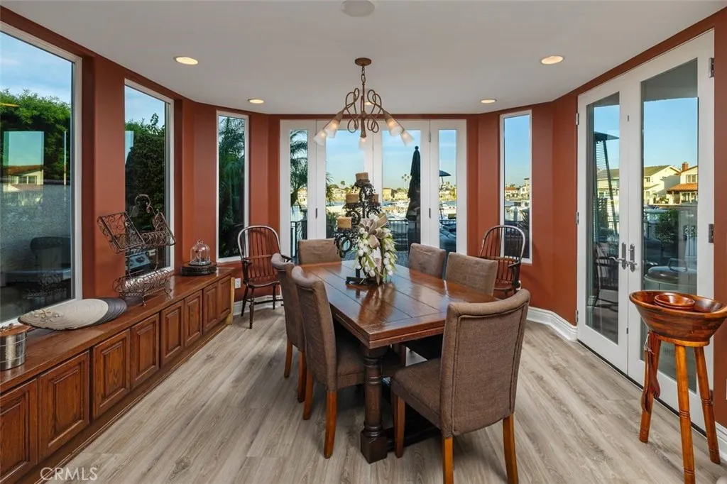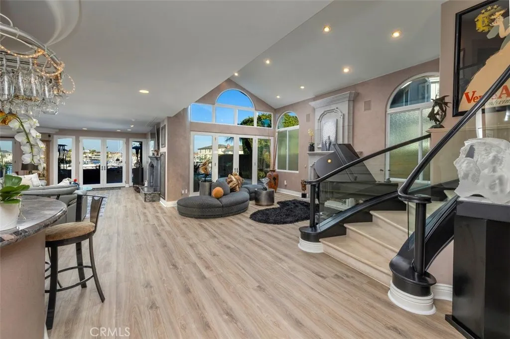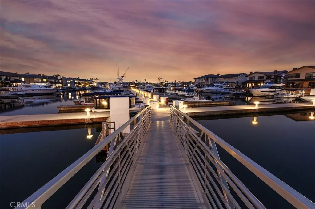 Just over 100 properties occupy what is widely regarded as Huntington Harbour’s most desired 24 hour guard-gated enclave – Coral Cay. Recently reimagined to reflect a contemporary aesthetic this estate-style property is set within the quiet curve of the idyllic neighborhood’s private marina. The over 5,800 square-foot parcel’s position enjoys delightful views from nearly every vantage – including a charming panorama of the on-water lifestyle, and the sparkling Main Channel. The nearly 4,000 square feet of dwellings are both accommodating and well designed – affording residents an elegant, yet comfortable surround for modern living, dining, and relaxation, as well as the attributes for large-scale or intimate gatherings. Along with the addition of steel beams to open up the first level of the generously appointed four-bedroom, three-bath home – the interior is replete with amenities and fine finishes – including walls of windows and glass, capturing captivating waterfront vistas; abundant employment of hardwoods and stone; a graphic, bespoke curved glass stair; over-height ceilings; a fully-equipped bar with a ‘living ecosystem’, 175-gallon exotic fish tank, beverage refrigeration, and an adjacent games or billiards room; a culinary enthusiast’s kitchen with a Wolf range, and built-in heat lamps; dual Sub Zero refrigerators, warming drawers, ice maker, dual sinks, a primary spa-like bath with a custom granite soaking tub and arced glass shower; a tankless water heater, new generator, dual-zoned HVAC, and soft water systems; and an office and fitness room – both easily converted to ancillary bedrooms. The exterior, of equal refinement, is complemented by its vast water frontage; an expansive terrace enjoying both sun-filled and covered spaces for enjoyment, a plunge pool, and a deep-water dock with capacity for an up to 40’+ craft. Coral Cay boasts a pristine private beach, pickle ball and tennis courts. Further distinguishing this extraordinary property is optimal walking distance to the local beaches and the area’s finest cultural, social, and recreational offerings and resources.