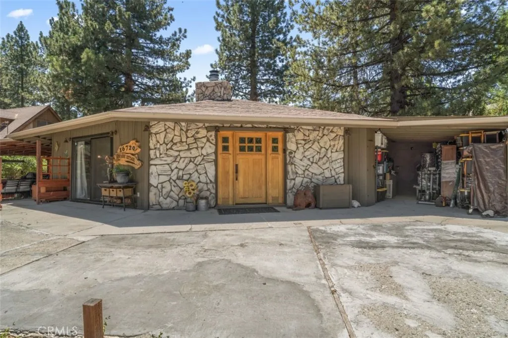 This comfortable single-level home offers an easy living layout, whether for full-time use, a weekend retreat, or a vacation rental. Situated on a mostly flat, usable lot near the west end of town, it’s just a short walk to the clubhouse, equestrian center, and village amenities. The circular driveway offers plenty of parking, along with an attached carport. With no stairs inside or outside, the home is fully accessible and simple to navigate. Inside, vaulted ceilings and open sight lines create a bright, spacious feel. A covered patio sits just off the kitchen and provides a great spot for outdoor dining or relaxing in the evenings. The home features thoughtful design elements, unique finishes, and artistic touches throughout. Some furnishings and décor are included, making it easy to settle in. A butler’s pantry offers extra storage and function, and overhead access leads to approximately 600 square feet of additional storage space. The distinctive circular floor plan connects the kitchen, bedrooms, and baths back to the main living area, creating a smooth flow. Each room has its own character, giving the home a truly one-of-a-kind feel.