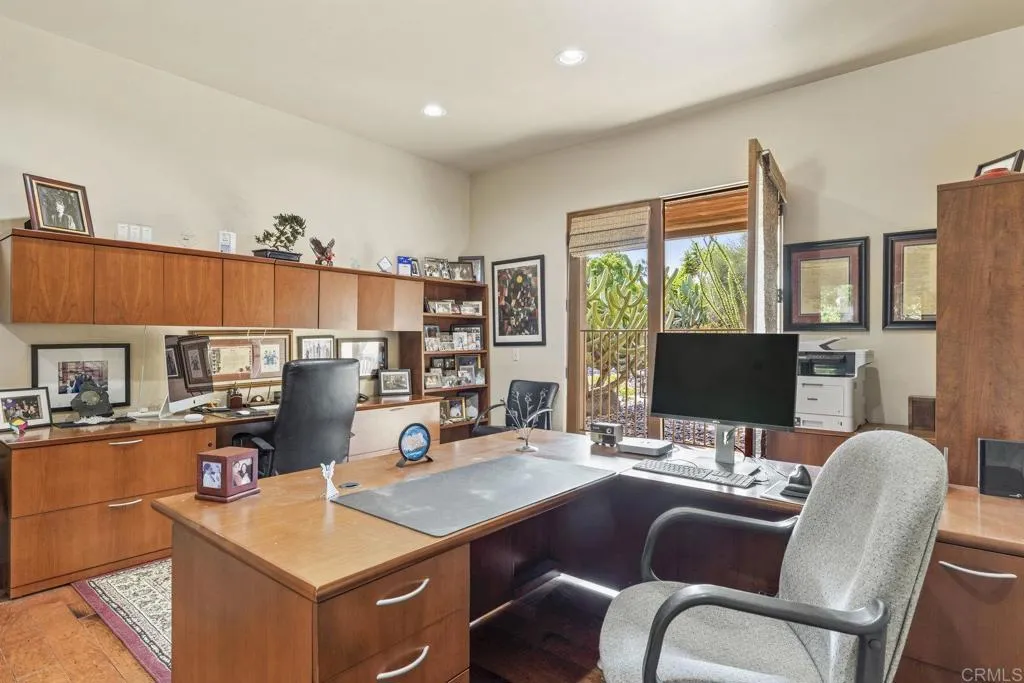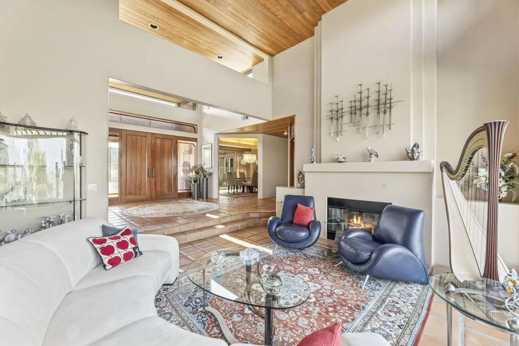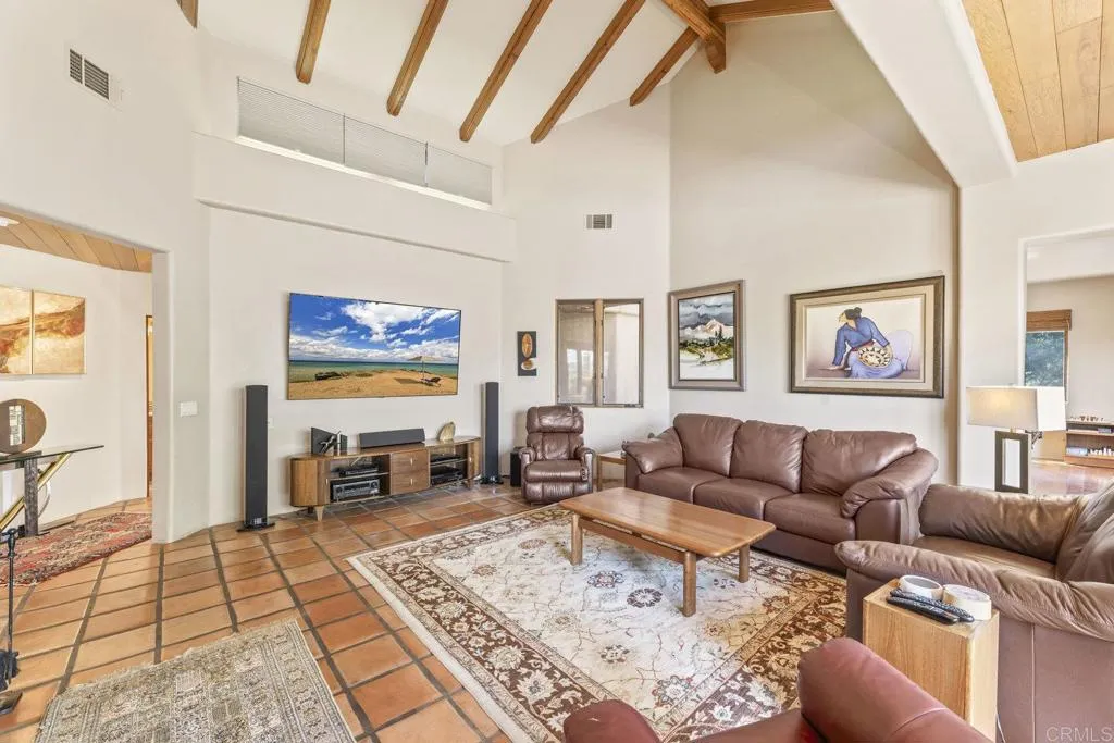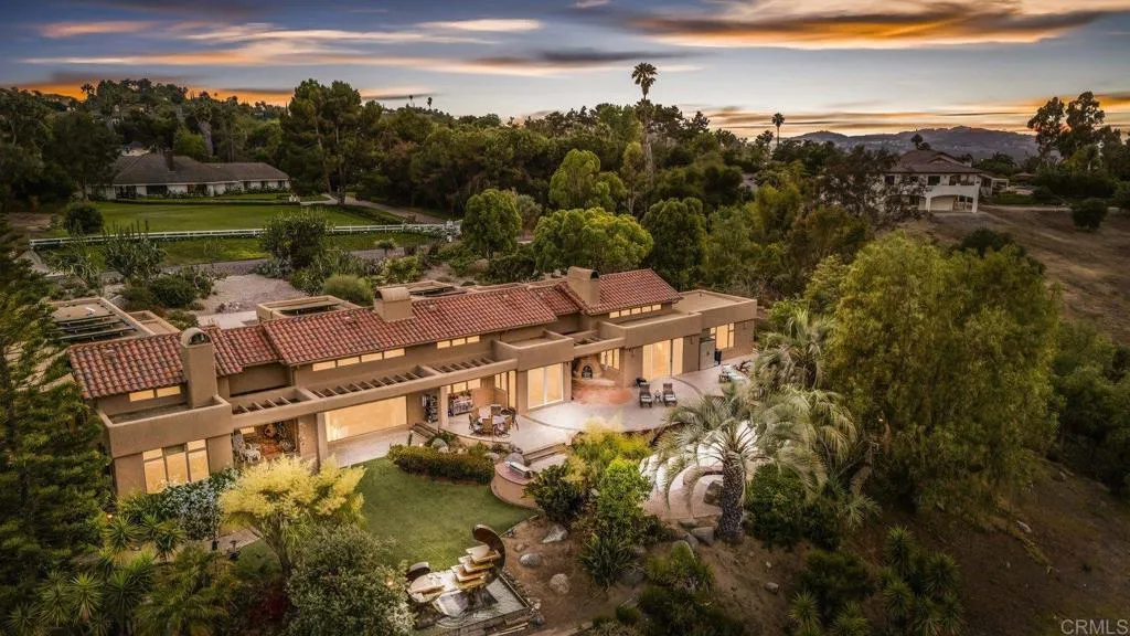 One of a kind custom single story home nestled in a tranquil setting, surrounded by bountiful gardens! No HOA This magazine worthy Sante Fe style ranch house features 4 bedrooms, 6 bathrooms spread out over 5,817 of meticulously designed living space. As you step into this architectural masterpiece built naturally into the surrounding landscape, you will be amazed by the 5.89 acres of awe inspiring views. The chef's kitchen is a culinary haven, featuring a large kitchen island, SubZero fridge, Wolf Appliances oven, DCS cooktop, and ample space to spread out and make your favorite meal. Host unforgettable events in the multiple living spaces or take the festivities outdoors to the entertainer's paradise, spacious patio, Mark Stasz custom sculpture and water features with an inviting in-ground saltwater pool & spa. Luscious landscaping includes fully irrigated drought tolerant xeriscaping, an income producing protea farm, and plus orchard featuring citrus and fig trees. After a long day, relax and unwind in the resort like oversize primary retreat featuring soaking tub, cedar lined walk in closet, sauna providing a sense of solitude. Enjoy energy efficiencies with owned solar panels and full backup generator keeping your electricity bills at a minimum. Tailor made oversized garages with custom car lift and fully operating 1200 square foot woodshop, provides plenty of room to store all over your vehicles, toys while enjoying your favorite hobbies. Don’t miss the opportunity to own a one-of-a-kind oasis that blends classic California living with extraordinary beauty. 30663 Via Maria Elena is not just a home it is a lifestyle!