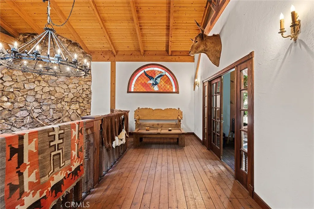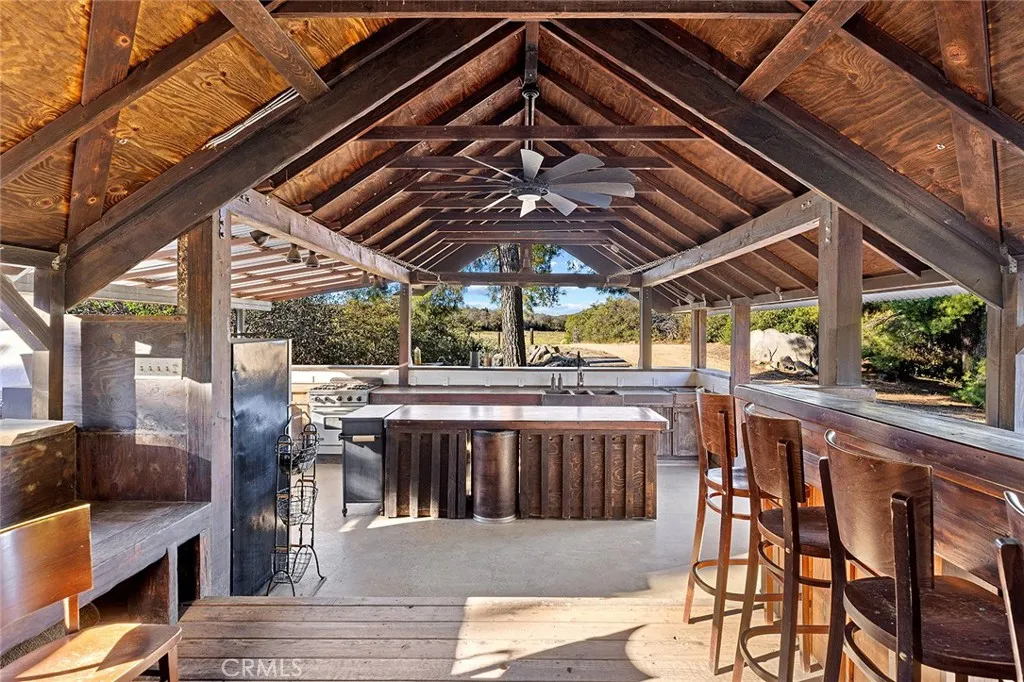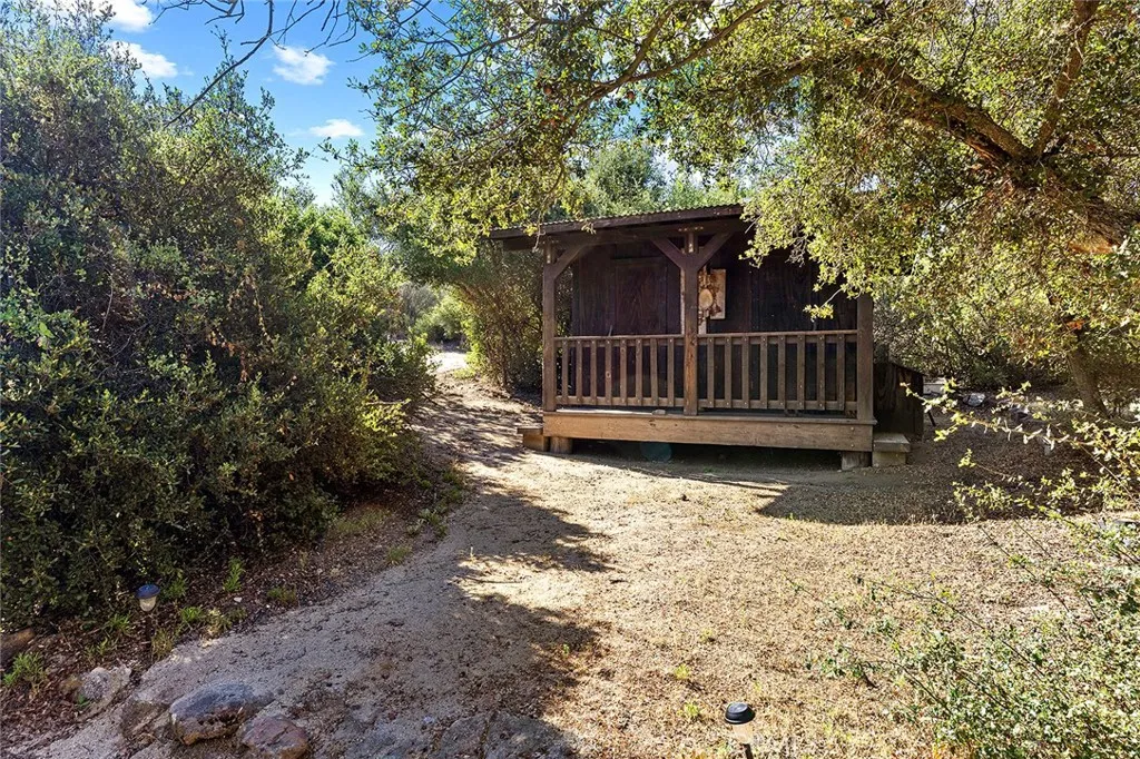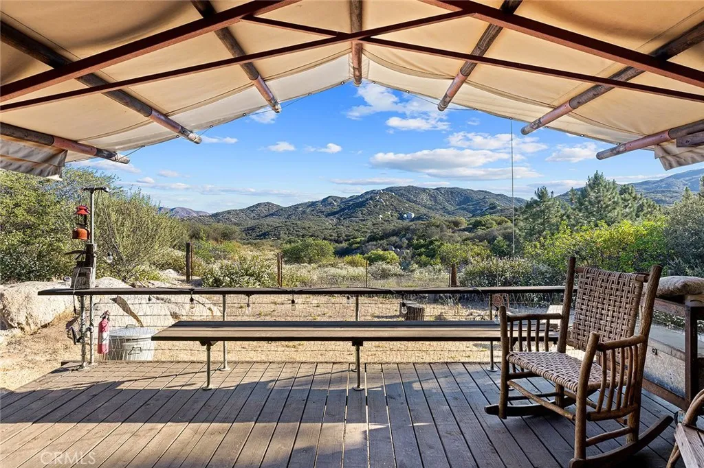 Hidden away off the Ortega HWY and reminiscent of simpler times, this 60-acre equestrian ranch offers serenity unmatched. Surrounded by the federally-preserved Cleveland National Forest, this incredible retreat lies within the boundaries of the 40,000-acre San Mateo Canyon Wilderness & southern Santa Ana Mountains. A beautiful escape rarely available, the property presents immense opportunity. Upon arrival, a post & beam mountain-lodge home welcomes you. Very custom in every sense from the skillful millwork throughout, hand-crafted doors, artisan windows & furnishings to the live Oak tree growing through the interior, the 4,500 SF old-frontier home is a true work of art. Harmonious with the native surroundings, the main house features 4 bedrooms (3 suites), a large primary suite w/fireplace, 1/2 bath, a spacious kitchen & pantry, game room, beam-ceiling living room with scenic views, 2-story fireside dining with prominent stone-cladded fireplace, western bar, mezzanine, laundry room. Several decks offer relaxing outdoor retreat shaded by the surrounding Oak trees. Amazing grounds include a vast (irrigated) lilac grove, pool & pool deck, various citrus trees and a farm-to-table fruit & veggie home garden. Beyond the main house: guest house (current recording studio), glampsite with 5 canvas “Denver” tents, furnished honeymoon suite, camp bathroom, outfitted camp kitchen with several high-end amenities + pizza oven. This incredible venue offers a multitude of uses with potential to host large events, weddings, retreats, etc. Established equestrian facilities: Accommodation for 50+ horses, 100-yd (square) training pen, 50-yd (circular) pen, horse walker, 6 horse pens, several turnouts, 3 massive paddocks (both w/feeders & water), tack rooms, 4-stable barn, horse wash bays, foaling & rehab stalls, modular 4-rail horse corrals, all with major space beyond to ride and enjoy the native lands abound. Enchanting grounds spanning 60 acres of natural beauty including miles of beautiful scenic trails, year-round creeks & waterfalls, mountaintop vistas with expansive views and the distant ocean horizon, large grassy pastures with oak trees where the horses can run free. Other key values:heavy-duty ranch equipment, artesian water well & pump from natural spring, multiple solar arrays, generators, batteries, storage containers, water tanks, & other personal property to be determined. For those in pursuit of complete serenity with close proximity to the coast, this is it.