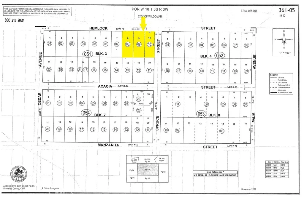 Exciting new listing! Offering a collection of 3 contiguous lots in the growing city of Wildomar, in Riverside County. Located north of the 15 Freeway and Cottonwood Canyon Road, at Hemlock St., Power is nearby the topography varies from flat to gently rolling, offering scenic views and flexible development potential. Short drive to I-15, I-215, and Hwy 74, Proximity to Loma Linda University Medical Center, Mt. San Jacinto College, shopping centers, and schools. Located near Canyon Lake, Menifee, and Lake Elsinore. Whether you’re looking to develop one home or invest in multiple parcels, this is an excellent opportunity in one of Southern California’s fastest-growing regions. Enjoy privacy, convenience, and beautiful surroundings, not quite off the grid, but close to nature. Buyer to verify land use and development potential with the City of Wildomar Planning Department. APN: 361-051-008 ; 361-051-009; 361-051-010 ; Size: 26,500 S.F ; Zoning: RR ; Terrain: Flat to rolling ; GPS: 33.655924, -117.234504 (N.W Corner)