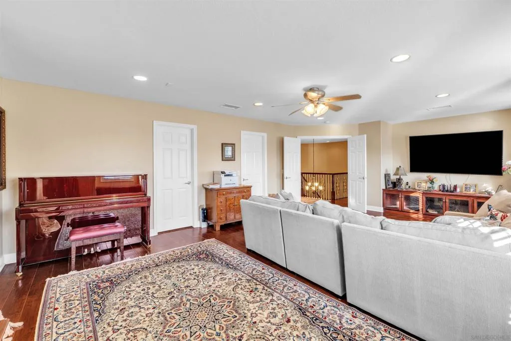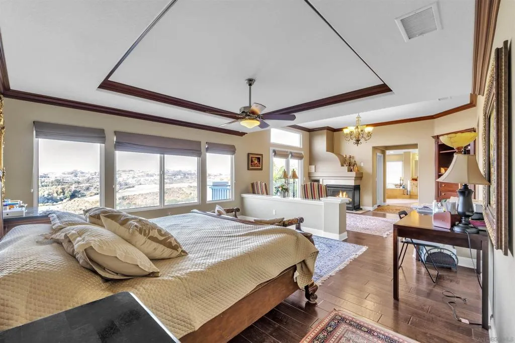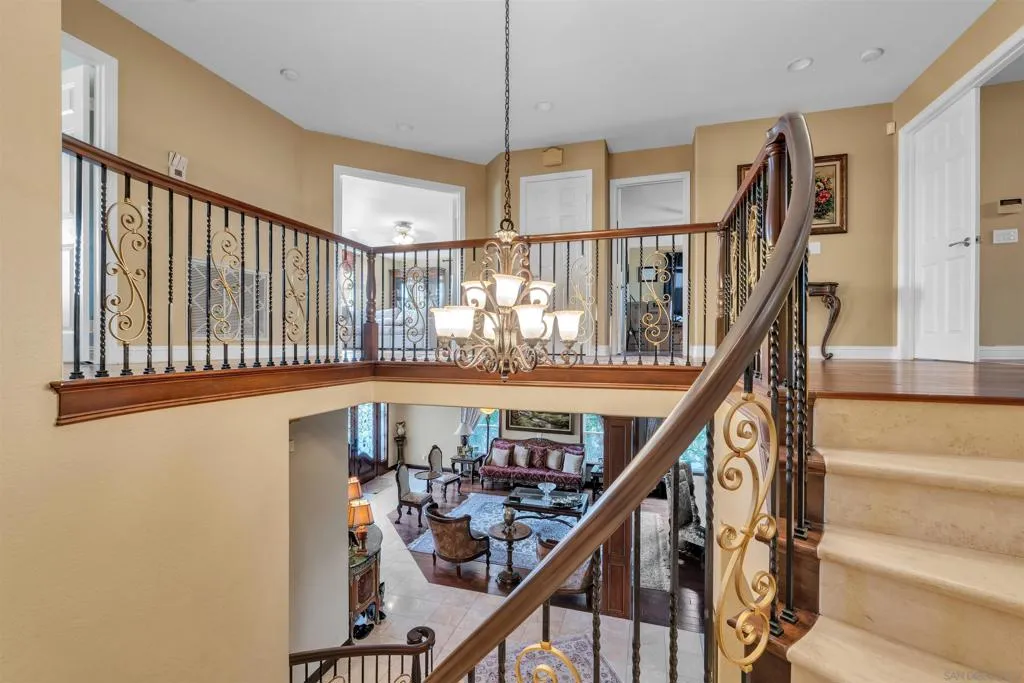 Cose distance to Grand Del Mar, Country Club & Golf Course, Close distance to CA Routh 56, & I-5, short distance to Sage Country Elementary, t 21 Tesla Solar Panels are fully paid BACK ON THE MARKET AT NO FAULT OF SELLERS OR PROPERTY. Price reduced for a lucky family to own this 4,687 SQ/F luxurious 6 Bedroom, 6 Bath where a colonial architecture meets a breathtaking unobstructed view of Sunrise and Sunset with 180 degrees Golf Corse, valley and hills, natural habitat vegetations and trees, in the Carmel Valley Posticous Lexington most desirable neighborhood. This house has an exceptional layout with an in-home office and a large Bedroom conveniently on the ground level and explore the second floor by stepping up the circular Staircase. to the Master Suit with the privet balcony facing 180 degrees of breathtaking VIEW capturing the horizon and twinkling night light. or dipping into the jacuzzi style bathtub and relax. Enjoy the pleasure of cooking and entertaining in the large kitchen with an access to the outdoor BBQ and pool area. Large granite top Island with the Cooktop makes cooking a pleasure. The open floor plan in this house is most suitable for entertainment and creating a memorable moments. All bedrooms have large walking closits and priven bathrooms.