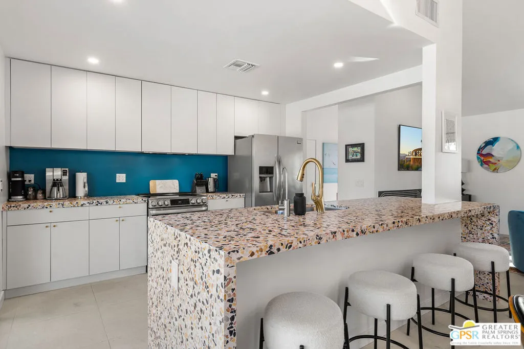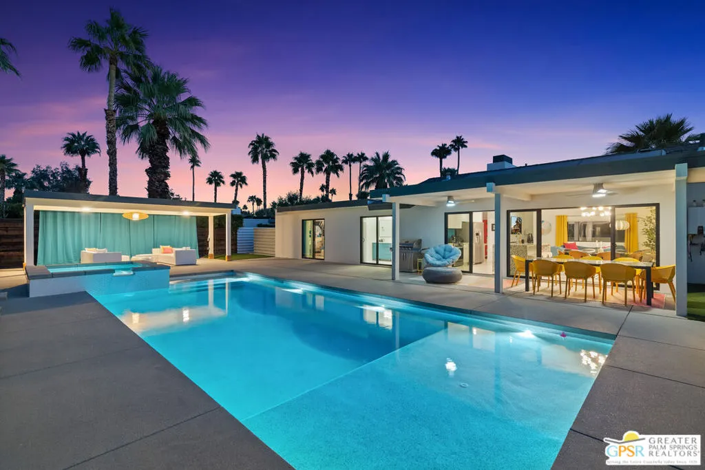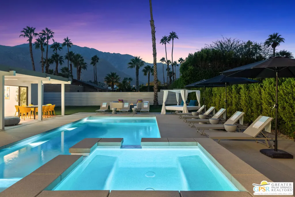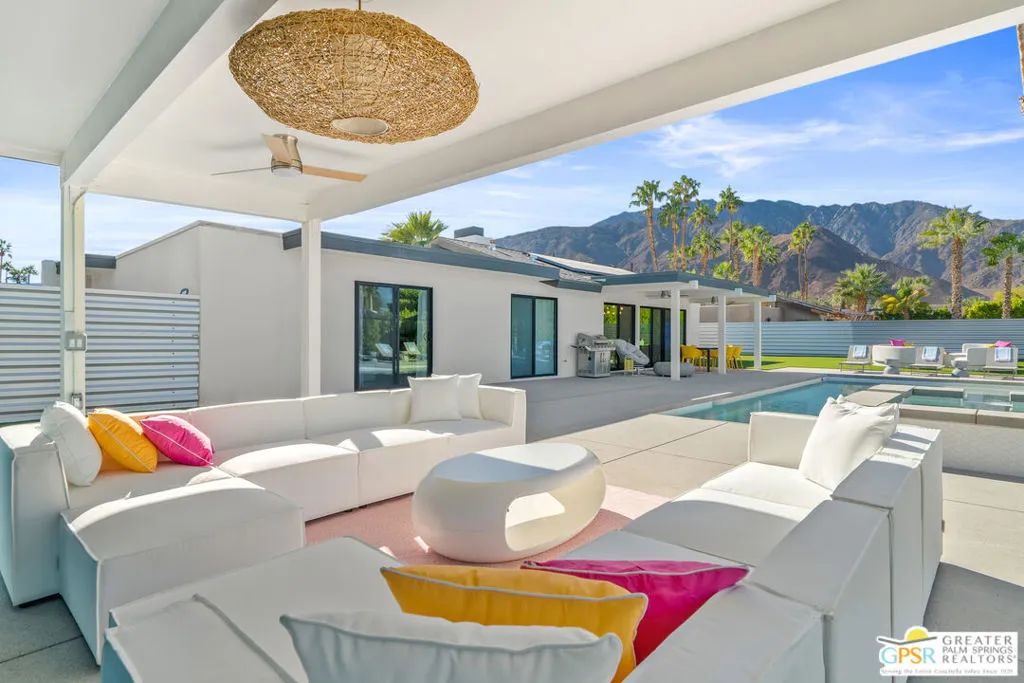Fully renovated, turnkey vacation home in prime Palm Springs location! Welcome to 888 E El Conquistador, your fully furnished desert retreat just minutes from the heart of downtown Palm Springs! This stunning 3-bedroom, 2-bath home has been completely updated and is being sold fully equipped. Everything you see stays, making it a true turnkey opportunity for investors or second-home seekers. Already backed by a strong property management team that will help you navigate the rental process for seamless operation, offering a hassle-free investment opportunity. Currently a top-performing short-term vacation rental, this completely remodeled property boasts a brand new pool, spa, fire pit, HVAC system, roof, reverse osmosis water filtration system, and dual-paned windows and doors, offering peace of mind and modern comfort. Inside, the open-concept layout flows effortlessly from a stylish kitchen with waterfall terrazzo countertops, to spacious living areas designed for entertaining or relaxing in style in front of the new, gas fireplace. Step outside to your private backyard paradise featuring a sparkling pool and spa, ample seating around the fire pit or outdoor living room, and breathtaking mountain views, ideal for soaking up the sun or enjoying evenings under the stars. This move-in-ready gem with fully owned solar (including battery storage with two Tesla Power walls, and a Telsa EV charger as well!) checks all the boxes. Ideal for both homeowners and investors. Act quickly to take advantage of peak rental season demand. Don't miss this opportunity!