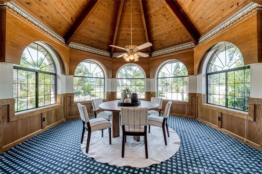 Artfully Designed Luxury Meets Resort Living on 2 Acres. Set alongside the 3rd hole of Belmont Country Club, this 6,538 sq ft custom estate is a masterclass in craftsmanship and design. Step through grand double doors into a soaring barrel-ceiling entry, where tongue-and-groove ceilings, arched passageways, and floor-to-ceiling windows create a sense of space and light. The formal dining room features handcrafted woodwork and serene views of lush greenery. Designed for both everyday comfort and unforgettable entertaining, this home offers 4 bedrooms, 3 full baths, 2 half baths, a formal living room, family room with a dramatic stone fireplace wall, and a game room. Throughout the home, you'll find extensive custom stonework, including floor-to-ceiling stone columns and a striking stone entry wall that makes a bold first impression. Outside, your private paradise awaits complete with a resort-style pool, fountain, gazebo, changing room, and mature orchard producing apples, tangelos, apricots, persimmons, grapefruit, and more. A garden area invites farm-to-table living. Additional features include a 2024 HVAC, cedar-lined closets, dual-pane windows, a 3-car garage, RV garage, and pull-through covered parking near the front entrance. Every inch of this estate speaks to thoughtful detail, timeless design, and elevated living.