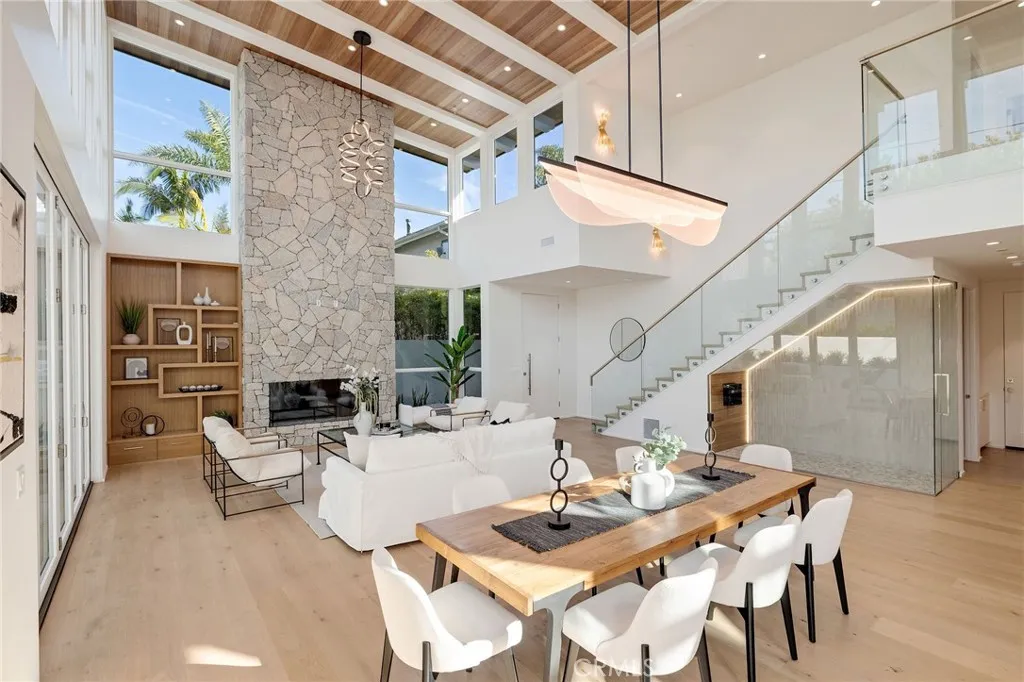 Step into elevated living with this Brand-New, CUSTOM "Modern Mid-Century" masterpiece, thoughtfully designed and expertly built by Sean Icaza Construction. Combining timeless architectural elegance with modern functionality, this four-bedroom residence—plus a custom-designed loft office—offers the perfect fusion of form and lifestyle flexibility. Inside, 28-foot ceilings and dramatic floor-to-ceiling glass panels flood the open-concept main room and loft with natural light, creating a stunning connection to the private, entertainer's backyard. Seamless indoor/outdoor flow is achieved with 12 foot La Cantina bifold door system and bar counter window, perfect for hosting or relaxing. The kitchen is a true showpiece, featuring handcrafted White Oak cabinets (not veneer), Thermador appliances, a walk-in pantry wired for additional appliances, and custom natural stone finishes. Custom Kayu solid Brazilian hardwood accents continue throughout the home, including ceilings, eaves, and fencing—tying the indoor and outdoor spaces together with warmth and character. Every detail speaks to quality, Hand-finished White Oak flooring (not engineered). Custom cabinetry and built-ins throughout, including desks in secondary bedrooms. Custom glass stair railings. Picturesque, temperature controlled wine display under the main stairs. Control4 Ready Smart Home System for cameras, AV, speakers, and lighting. Dual-zone Heating and Air Conditioning throughout with Nest controls. Wired for electric blinds in all bedrooms. Solar-powered home with 2 Tesla Powerwalls and hookups for two vehicles. The backyard is fully equipped for luxury entertaining, with a built-in Lynx BBQ, fridge, ice maker, fire-pit, and a dining area wired for lighting and outdoor TV. A finished garage with epoxy floors and custom cabinetry rounds out this exceptional home—located in one of the South Bay’s most sought-after towns...Manhattan Beach. Offering unmatched design, advanced technology, and a relaxed coastal vibe, this custom designed and built residence defines California modern living.
