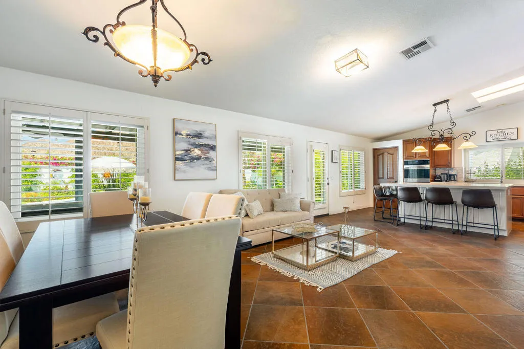 Don't miss this fantastic opportunity to lease long-term or (31 days +) residence in Lake La Quinta! Available now for yearly lease $6,500 furnished, or Seasonal $8,300. Privately located on a cul-de-sac, this charming residence offers 3 bedrooms, 2 bathrooms, and a thoughtfully designed layout perfect for extended stays. Spacious master suite with a king-size bed, walk-in closet, and dual vanities. Guest Bedroom 2: queen-size bed, and Guest Bedroom 3: queen-size bed plus a bunk bed - ideal for families or guests. Open-concept kitchen with quartz countertops, ample cabinetry, and stainless steel appliances. Washer and dryer included for your convenience. Step outside to enjoy breathtaking mountain views that frame the expansive backyard, featuring a sparkling pool and spa, a covered patio ideal for entertaining, and impeccably landscaped grounds. Non-heated pool. This premier gated community offers a recreational lake, stunning views, a manned gate, and security patrol. The Chateau restaurant is within walking distance and offers patio dining overlooking the lake. $250 cap on utilities paid by the landlord for seasonal; any amount over will be the tenant's responsibility. $350 non-refundable cleaning fee. The security deposit varies depending on lease terms. Call or text Sylvia (760) 799-5953 for a showing.