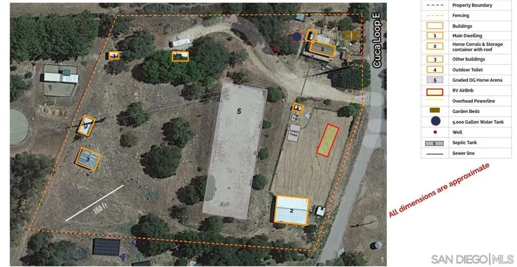 Price improvement!! Private retreat in historic Cuca Ranch, nestled on a fully fenced 3.58-acre parcel with sweeping views of the Palomar Mountains. This versatile property is perfectly set up for equestrian living, peaceful country getaways, and income generation—all in one. In the past four years, the property has undergone a complete transformation through substantial upgrades, carefully planned additions, and extensive rehabilitation through hard work and over hundred thousand in capital investment. The recently remodeled 500 sq. ft manufactured home offers cozy living with modern comforts, backed by a well and 5,000-gallon storage tank, 200-amp SDG&E power, and a septic system installed for a future 3-bedroom, 2-bath expansion. Equestrian features include 4 covered horse stalls with an adjoining hay storage area, a regulation-size horse arena, and plenty of open space to ride and roam. Additional improvements include: 1) 40-foot shipping container for secure storage 2) Metal-roofed workshop area with a concrete pad—ready for your tools or creative projects 3) Multiple outbuildings offering endless possibilities for use or development 4) For those looking to generate income, a well-established Airbnb motorhome on-site brings in consistent revenue with 30+ five-star reviews. Whether you're dreaming of a horse property, a mountain escape, or a flexible investment opportunity, this rare find in Cuca Ranch is ready to deliver.