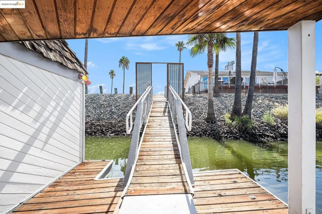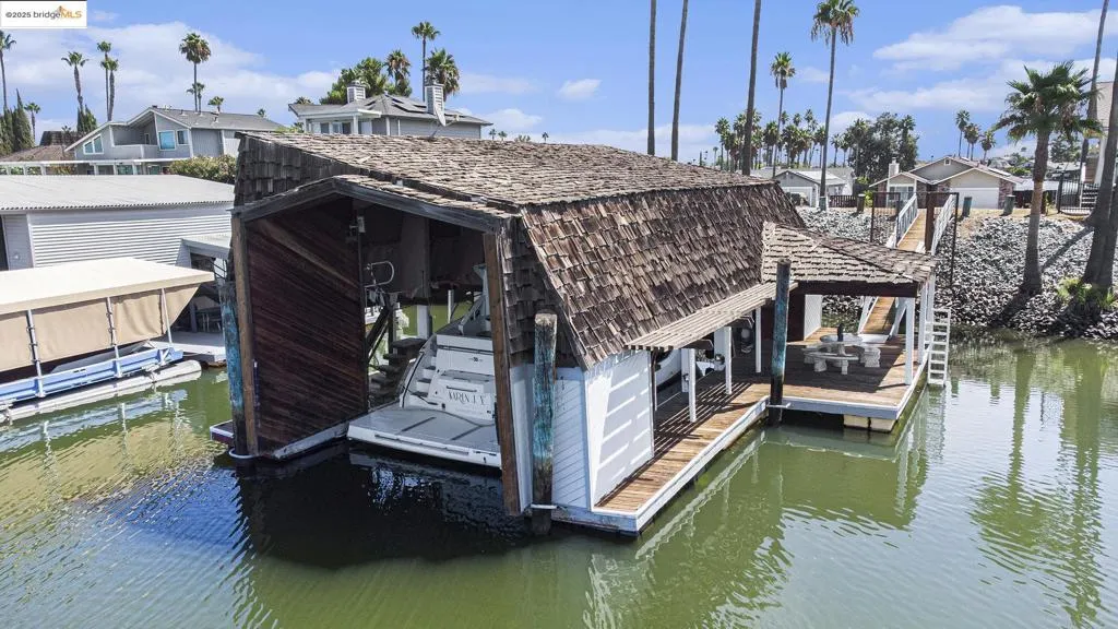 Delta Waterfront Lot with Fully Improved Boat Shed – Ready to Build! This rare waterfront parcel comes fully equipped with power, water, and sewer already in place—just bring your home plans! The custom boat shed features 200-amp electrical service, dual 50-amp boat outlets, multiple 20-amp outlets, a full bathroom with shower, kitchenette with appliances, laundry, and generous storage areas. Designed for stability with earthquake and wind tie-downs, the dock feels solid underfoot. Moorage for a 60’ boat inside the shed, plus side ties for additional vessels. Secure gated access with deadbolts throughout. Enjoy life on the Delta now while you plan your future dream home!