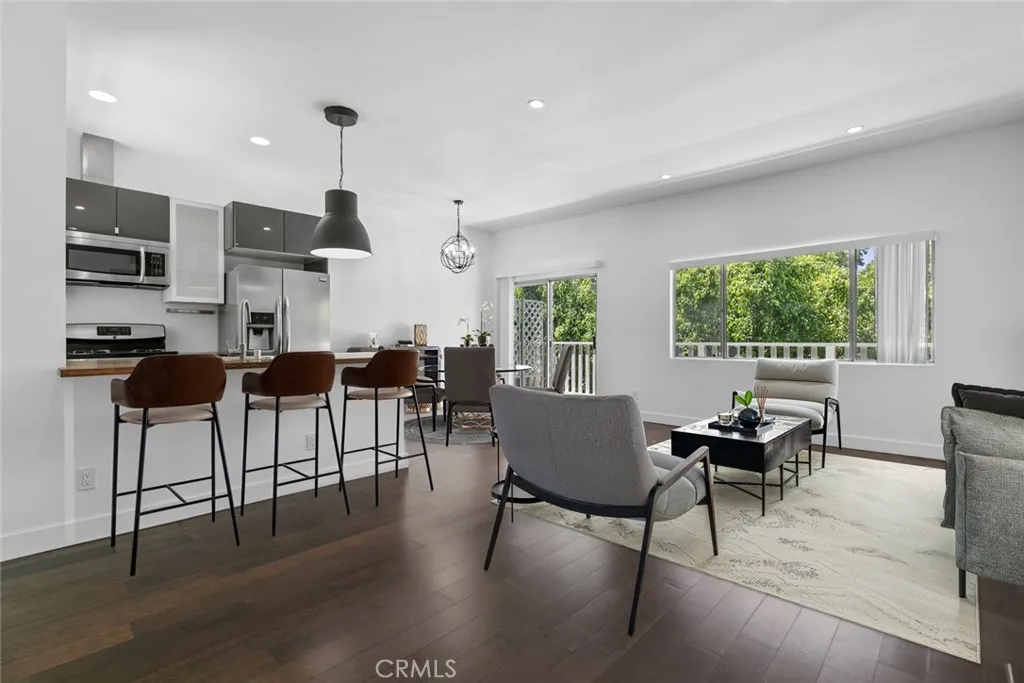 AMAZING OPPORTUNITY in the Heart of Sherman Oaks Welcome to a beautifully upgraded second-floor, rear-facing 2-bedroom, 2-bathroom condo offering privacy, natural light, and exceptional value in one of the Valley’s most desirable neighborhoods. (No elevators — added privacy and reduced foot traffic.) From the moment you walk in, you’re greeted by a bright, open-concept living space featuring rich engineered hardwood flooring throughout, sleek recessed lighting, and oversized windows framing peaceful, tree-lined views. The layout flows seamlessly from the living area to a private balcony, creating the perfect setting for both relaxing and entertaining. The thoughtfully updated kitchen showcases: Modern flat-panel cabinetry Butcher block countertops with bar seating Stainless steel appliances Contemporary pendant lighting Clean, minimalist finishes The primary suite is spacious and serene, complete with a large closet and an updated en-suite bath. The second bedroom is generously sized, ideal for guests, a home office, or a roommate setup, with a fully updated bathroom just across the hall. Additional features include: In-unit stackable washer and dryer Central A/C and heat controlled by NEST Spacious Walk In Closet Quiet rear location within the building Extremely low HOA dues compared to similar Sherman Oaks condos Two subterranean parking spaces with private storage (Space F) Community amenities include a fitness center, recreation room, billiards area, and additional laundry facilities. Location is unbeatable — just minutes from Ventura Blvd’s premier dining, shopping, and nightlife. Only a short walk to Whole Foods and the neighborhood favorite Hugo’s Tacos. With anticipated interest rate reductions projected in 2026, savvy buyers understand the strategy: when rates drop, values rise. Securing property now positions you ahead of the market curve. This is a rare combination of condition, location, and financial upside in Sherman Oaks.