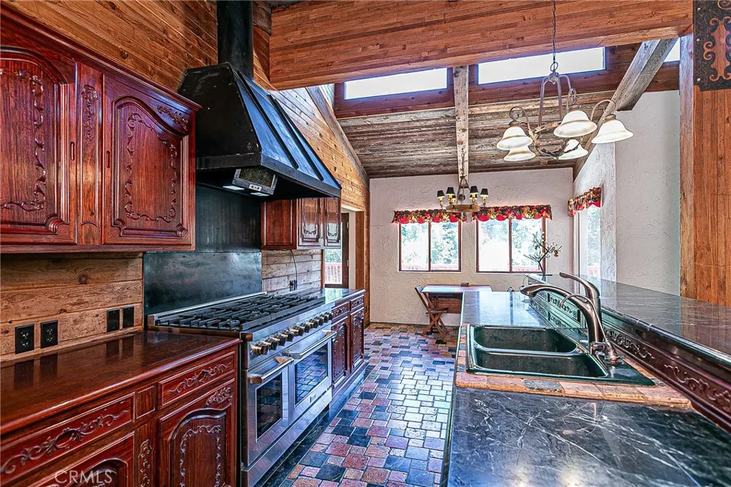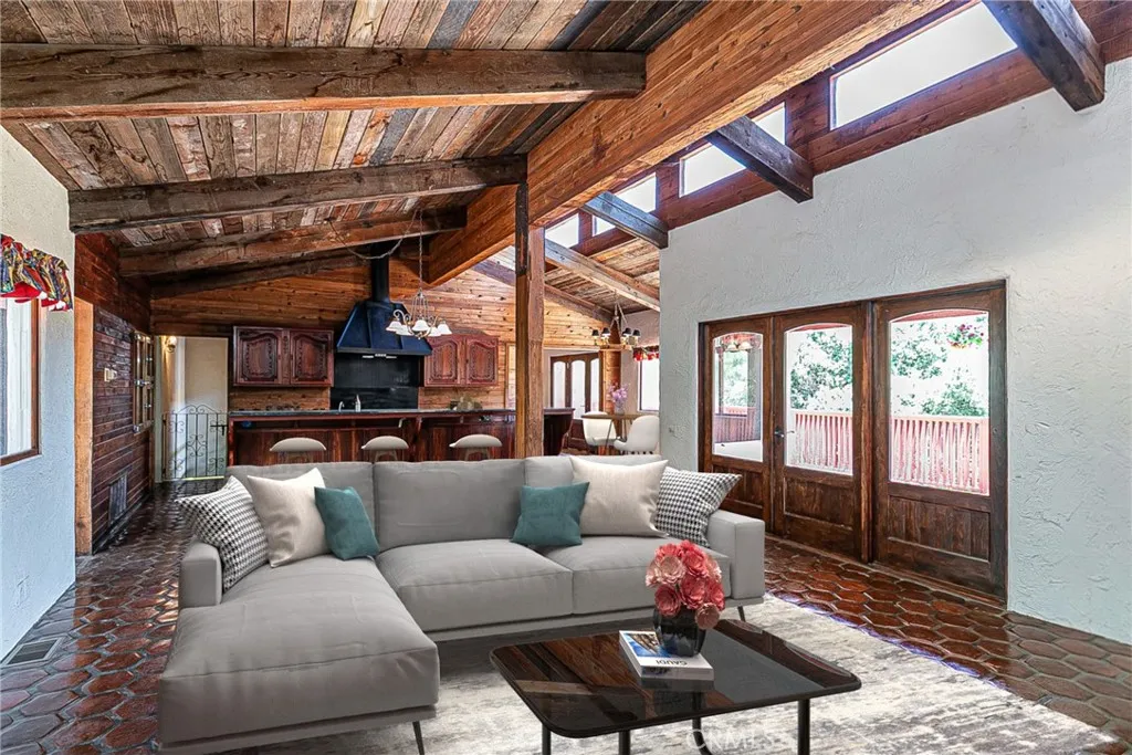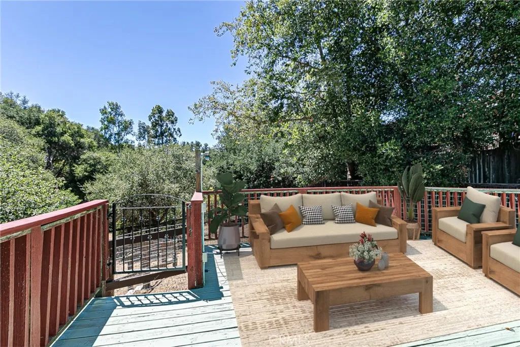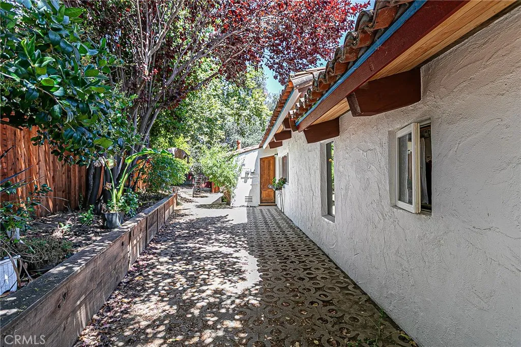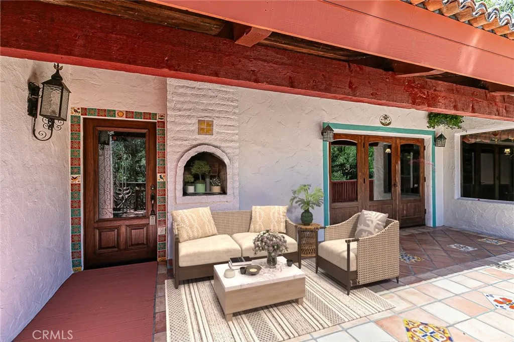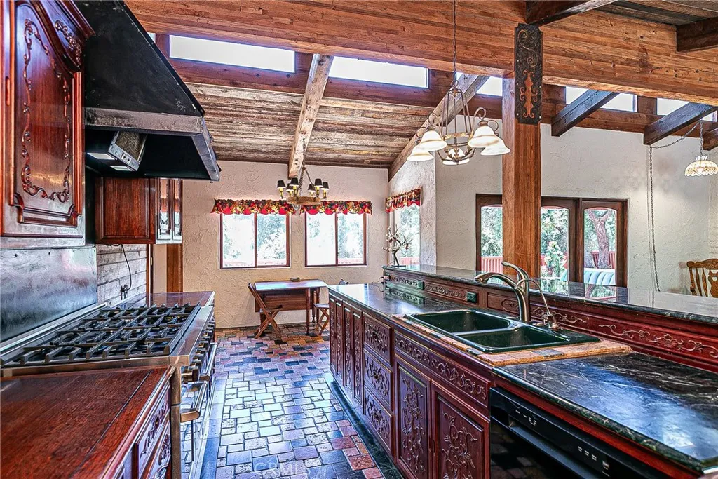 Discover a hidden hacienda nestled in the enchanting woods of Solvang, just moments away from restaurants, wine tasting, shops, parks & festivities. This colorful 2-story retreat is accessed via a private driveway, complete with your own bridge crossing your creek surrounded by a small forest of majestic oak trees. The living room boasts a cozy fireplace adorned with custom mantle & hearth. Experience the warmth of the beam ceilings made from wood sourced from a New Mexico mine, complemented by beautifully old-world textured walls. The custom kitchen is a chef's dream, featuring solid carved rosewood cabinets, brand-new Z Line 8-burner stove, & new dishwasher & a spacious walk-in refrigerator, accessed from the pantry & custom access doors in the kitchen. Enjoy the breakfast nook or take advantage of the formal dining room with space for a 12-foot table. The hacienda features 5 inviting bdrms, each with exterior door leading to an expansive deck. With 3.5 baths, this home is designed for comfort & convenience. Retreat to the primary suite, complete with wood-burning stove & a luxurious new jacuzzi tub. Downstairs, a recreation room, the 5th bedroom, a utility room & a wine cellar await your enjoyment. Additional amenities include a New Roof, New stackable washer & dryer & a 50-gallon gas water heater. This beautiful 1-acre lot is fenced for horses. Don't miss your chance to own this exceptional property; schedule a tour today & experience the magic yourself!