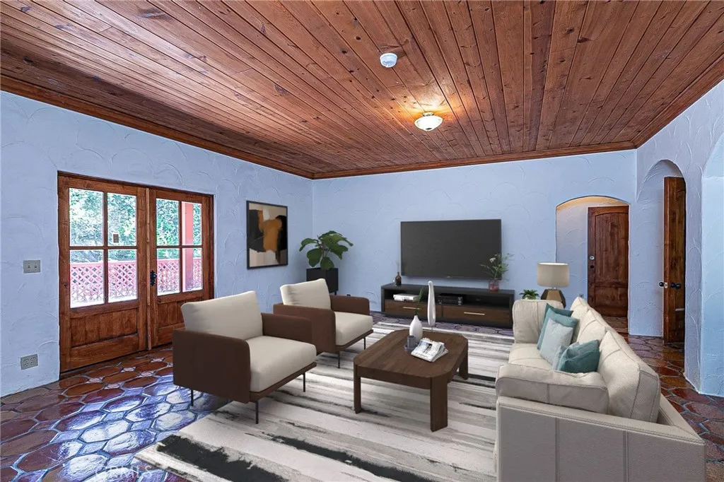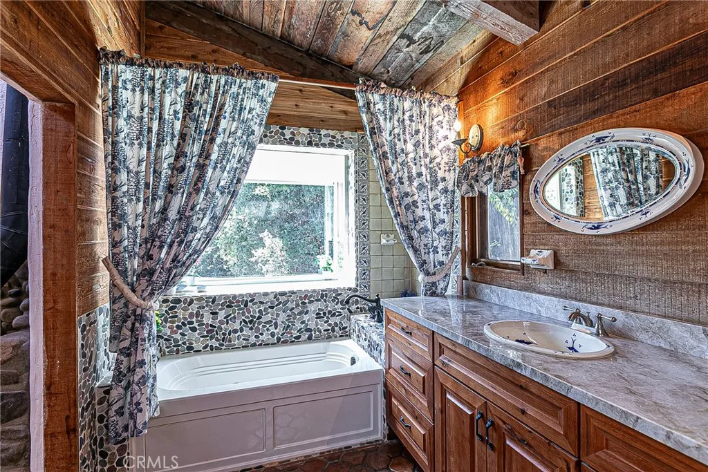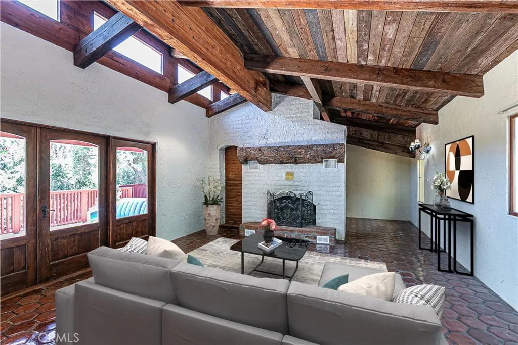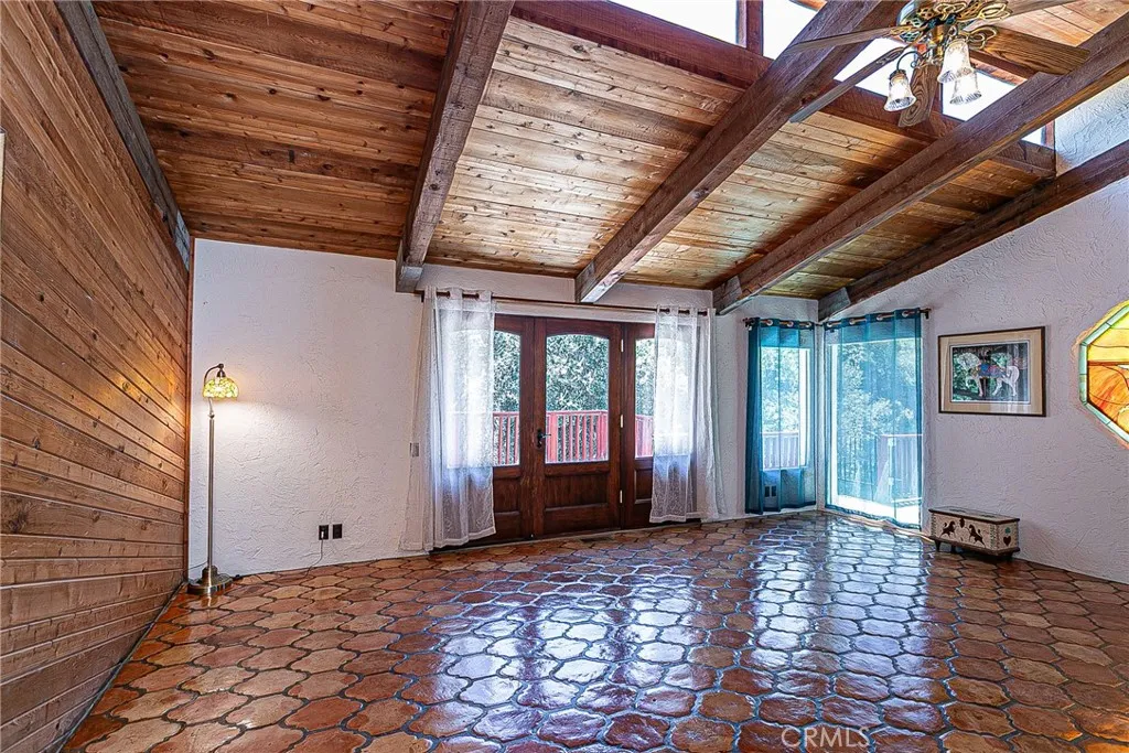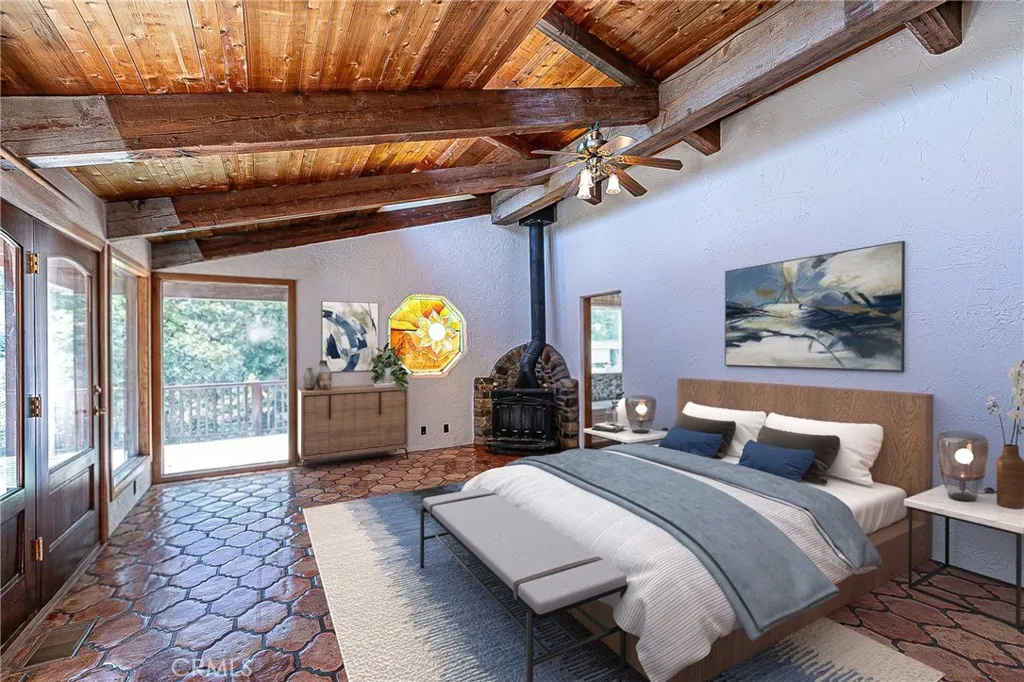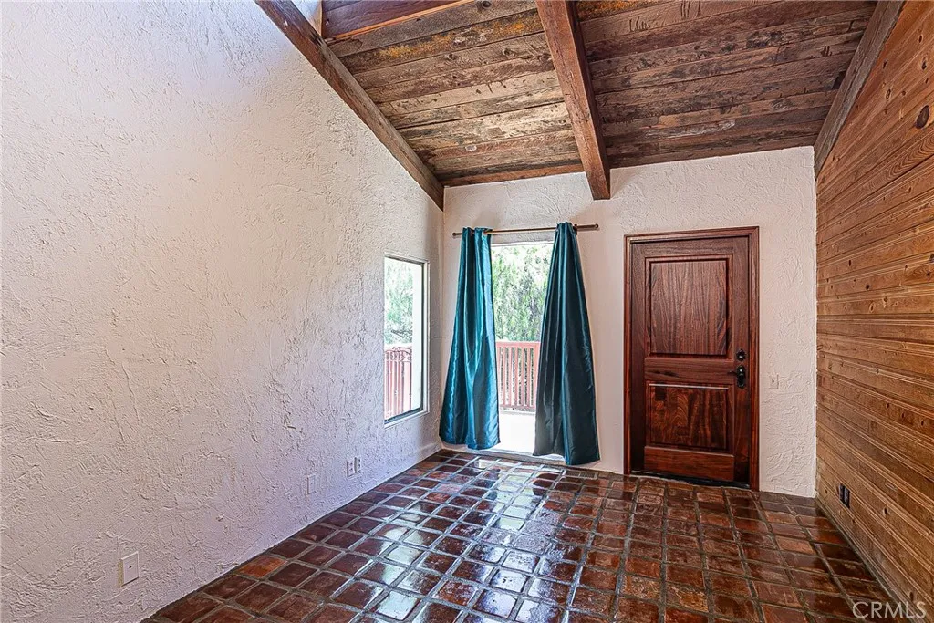 Discover a hidden hacienda nestled in the enchanting woods of Solvang, just moments away from restaurants, wine tasting, shops, parks & festivities. This colorful 2-story retreat is accessed via a private driveway, complete with your own bridge crossing your creek surrounded by a small forest of majestic oak trees. The living room boasts a cozy fireplace adorned with custom mantle & hearth. Experience the warmth of the beam ceilings made from wood sourced from a New Mexico mine, complemented by beautifully old-world textured walls. The custom kitchen is a chef's dream, featuring solid carved rosewood cabinets, brand-new Z Line 8-burner stove, & new dishwasher & a spacious walk-in refrigerator, accessed from the pantry & custom access doors in the kitchen. Enjoy the breakfast nook or take advantage of the formal dining room with space for a 12-foot table. The hacienda features 5 inviting bdrms, each with exterior door leading to an expansive deck. With 3.5 baths, this home is designed for comfort & convenience. Retreat to the primary suite, complete with wood-burning stove & a luxurious new jacuzzi tub. Downstairs, a recreation room, the 5th bedroom, a utility room & a wine cellar await your enjoyment. Additional amenities include a New Roof, New stackable washer & dryer & a 50-gallon gas water heater. This beautiful 1-acre lot is fenced for horses. Don't miss your chance to own this exceptional property; schedule a tour today & experience the magic yourself!
