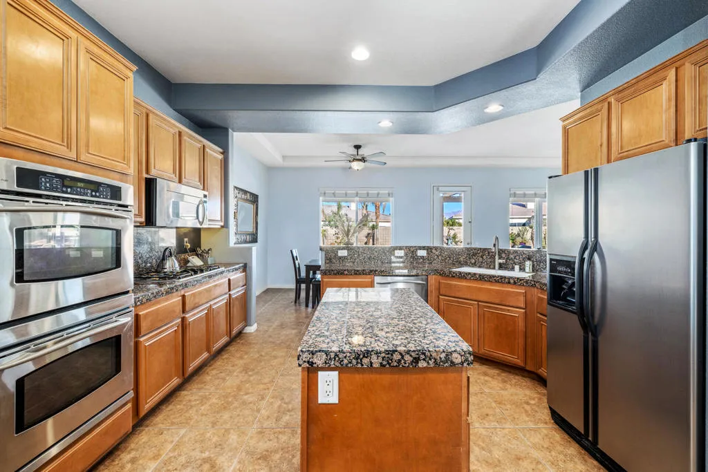 Owner would like long term lease. This beautiful 3 bedrooms Plus den pull out couch. 3 bath home is located heart of La Quinta. The house is turnkey with everything you need to vacation. Open floorpan w/tile through out. In the backyard it has an outdoor Fireplace w/gazebo. Gorgeous, large custom salt water pebble tec pool with waterfalls is the centerpiece, flanked by a generous sized BBQ island, gazebo and gas fireplace! All surrounded by the backdrop of stunning mountain views! Gated community close to shopping, golf and award winning Dining! Just pack your bags and book your stay.