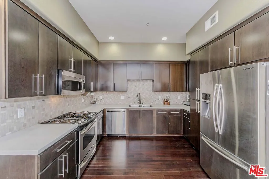 Elevated Penthouse Living at Its FinestExperience refined urban luxury in this stunning, light-filled top-floor penthouse offering breathtaking views and an exceptional single-level layout. Spanning approximately 1,850 sq ft, this rare residence features 3 spacious bedrooms, 2 full bathrooms, and a powder room, perfectly balancing elegance, comfort, and functionality.Soaring ceilings and walls of windows create a dramatic sense of openness while flooding the home with natural light. Rich wood flooring, custom built-ins, and a clean, contemporary design elevate the living experience throughout. The chef's kitchen is both beautiful and functional, showcasing Caesarstone countertops, mosaic tile backsplash, and sleek stainless steel appliancesideal for everyday living and entertaining alike.Step onto the private balcony and take in sweeping views of the San Gabriel Mountains, a truly special retreat rarely found in city living. The luxurious primary suite offers a spa-inspired bathroom and an expansive, custom-designed walk-in closetan absolute standout feature.Additional highlights include a full-size laundry room, energy-efficient tankless water heater, same-floor private storage, and reserved parking spaces conveniently located near the elevator. Meticulously maintained and architecturally refined, this penthouse delivers a rare opportunity to own a sophisticated, move-in-ready home that feels both serene and elevated. A true penthouse offering space, light, views, and timeless stylethis is urban living at its best.