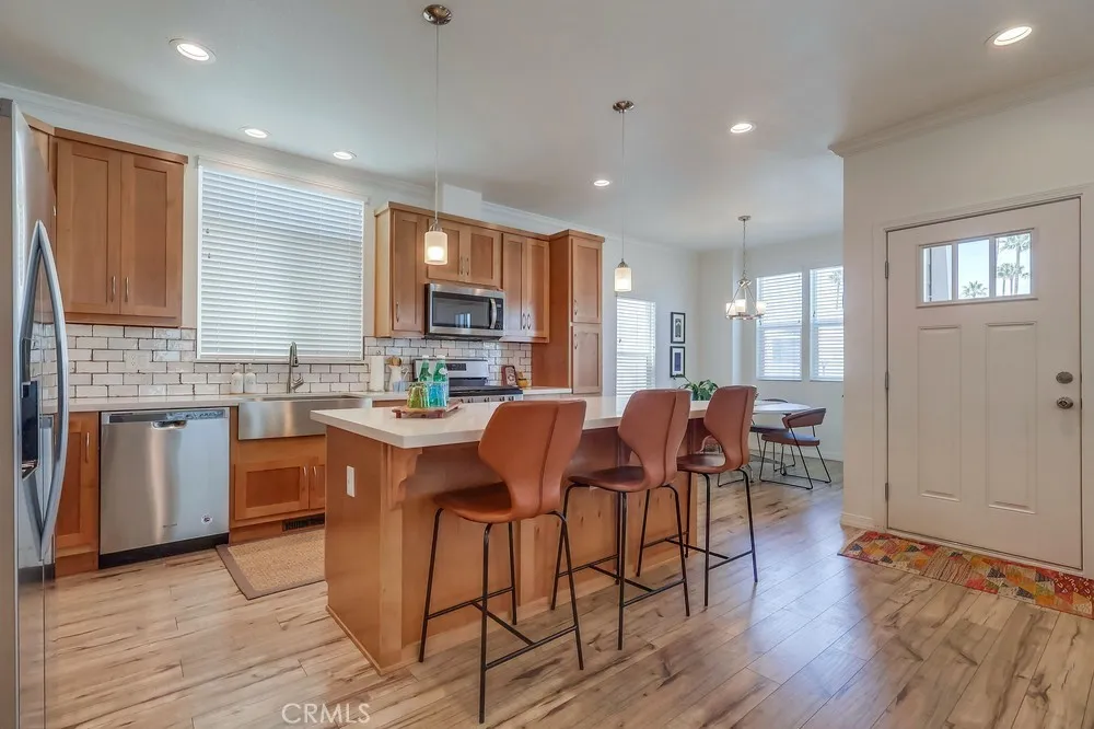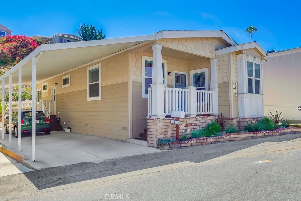 Welcome to 2550 Pacific Coast #143, a spectacular Craftsman-style 2-bedroom, 2-bathroom 1,200 sf designer home in the Skyline Mobile Community! Charming newer 2019 build turnkey home is located on a quiet walk street in an excellent school district. Open & airy home offers tranquility & ease featuring sunrises & sunsets, multiple outdoor seating areas, low maintenance yard, central A/C & heat, dual pane windows, 9-feet high ceilings, laminate floors, ceiling fans, custom blinds & crown molding. As you enter the home you walk into the spacious living room boasting natural light, high ceilings, recessed lights, laminate floors, ceiling fan & custom blinds. Kitchen opens to the living room & dining area. Kitchen is well equipped w/island, storage & shelving, 3-seat breakfast bar, recessed lights, farmhouse sink, stainless steel appliances including gas stove, oven, fridge (w/built-in ice maker/water), microwave, dishwasher, tile backsplash, butternut shaker hardwood cabinets, plentiful countertop space, custom blinds & laminate floors. Cozy dining area stuns w/exquisite chandelier, laminate floors & 3 windows pouring in natural light. Primary bedroom features massive closet, new carpet, ceiling fan, natural light, high ceilings, recessed lights & bathroom ensuite. Primary bathroom showcases soaking tub, walk-in shower, laminate tile floors, dual sink vanity, Quartz countertops, butternut hardwood cabinets & linen closet. Guest bedroom is the perfect size to convert to an office & home gym! Guest bedroom offers plentiful closet space, ceiling fan, laminate floors, custom blinds & exquisite wallpaper. Guest bathroom has a tub/shower combo, single sink vanity, butternut hardwood cabinets, Quartz countertops, recessed lights, medicine cabinet & laminate tile floors. Laundry room comes fully equipped w/washer & dryer, cabinets for storage & pet door. Exterior home offers quaint Trex deck w/brick skirting & garden planter, low maintenance landscaping & spacious back patio/terrace. Carport fits 3 cars on newer concrete driveway. Property taxes are ~$1,400/yr. Home located in excellent school district & near Whole Foods, Trader Joe’s, Starbucks, movie theater, restaurants, hospitals, freeway & beaches. Community boasts amenities including security guard gate, rec center, pool, hot tub, BBQ, billiards, shuffleboard, kitchen, darts, putting green & on-site manager. Monthly events include movies, water aerobics, yoga, poker, line dance, karaoke, guitar, tai chi & Bingo.