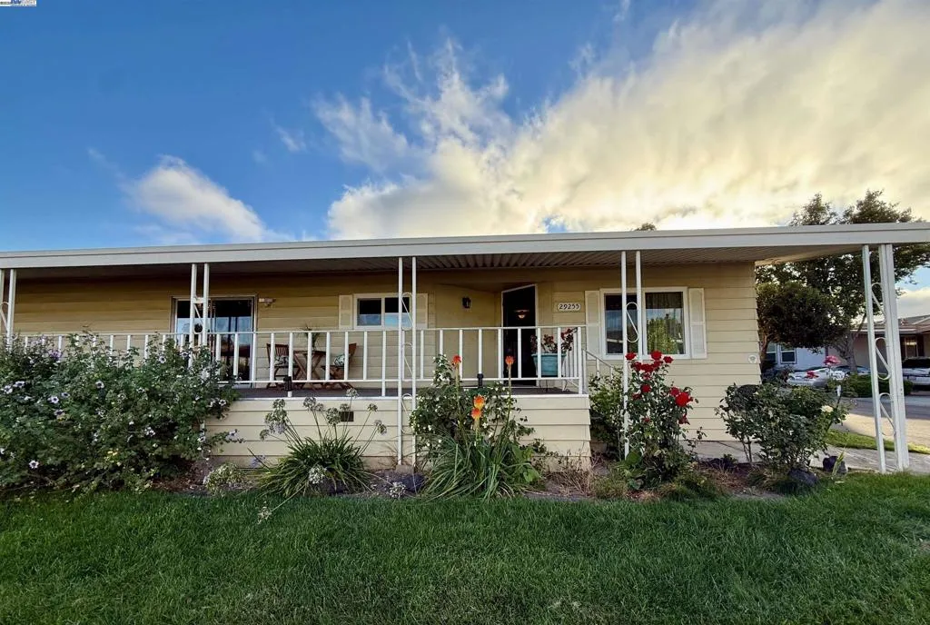 Welcome to this well-maintained 2-bedroom, 2-bathroom mobile home located in the sought-after New England Village community. This spacious 1,440 sq ft home features a bright, open floor plan with a large living room and laminate flooring throughout. With central heating and Air conditioning The kitchen offers beautiful granite countertops and a gas range, and water filter system combining style with everyday functionality. Newer dual pane windows throughout the home enhance comfort and energy efficiency. The primary bathroom has been recently updated, bringing a fresh and modern feel to the space. The large laundry room includes plenty of storage with extra cabinets, and both bedrooms feature mirrored closet doors. Plenty of outside storage in these two sheds Enjoy relaxing on the covered front patio—perfect for morning coffee or quiet afternoons. Roses and colorful flowers surround the home, adding charm and curb appeal. This home offers comfort, convenience, and a welcoming atmosphere in a vibrant 55+ community. Fireplaces: ELC