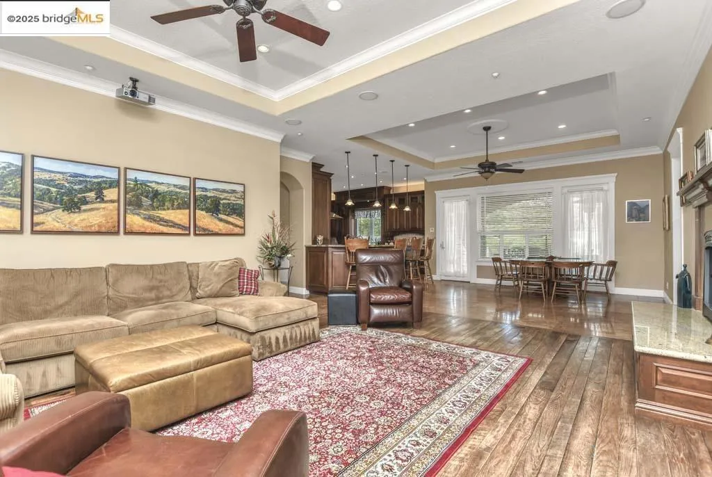 Experience the epitome of luxury in this spectacular five-acre gated estate, a rare gem that offers 360-degree hillside views from the sprawling custom home, thoughtfully designed for multi-generational living. 6 bedrooms, 4 full bathrooms, and 4 half baths, including a separate one-bedroom, one-bath apartment with a private entry. Formal living and dining rooms, a gourmet kitchen, an expansive family room, and an executive office/bedroom offer ample space to live and thrive. An upper-level bonus room/apartment with a full bathroom and private bedroom offers additional flexible-use space to create the ultimate game/media room, private in-law/guest quarters, gym, or office. Garage space for nine cars with finished walls, hardwood flooring, and front and rear access is ideal for a car enthusiast, while a detached 1,600 square-foot barn with a high ceiling and a car lift offers additional room for RVs, boats, and equipment. Low-maintenance landscape wraps around the home and patios. Built by Pond Masters, 100-foot custom-designed filtered swimming pool/pond with a beach entry. 500 Arbequina olive trees that annually yield about 400 gallons of olive oil, and 30 Manzanilla olive trees grown for curing, in addition to multiple fruit trees. Envision endless possibilities.