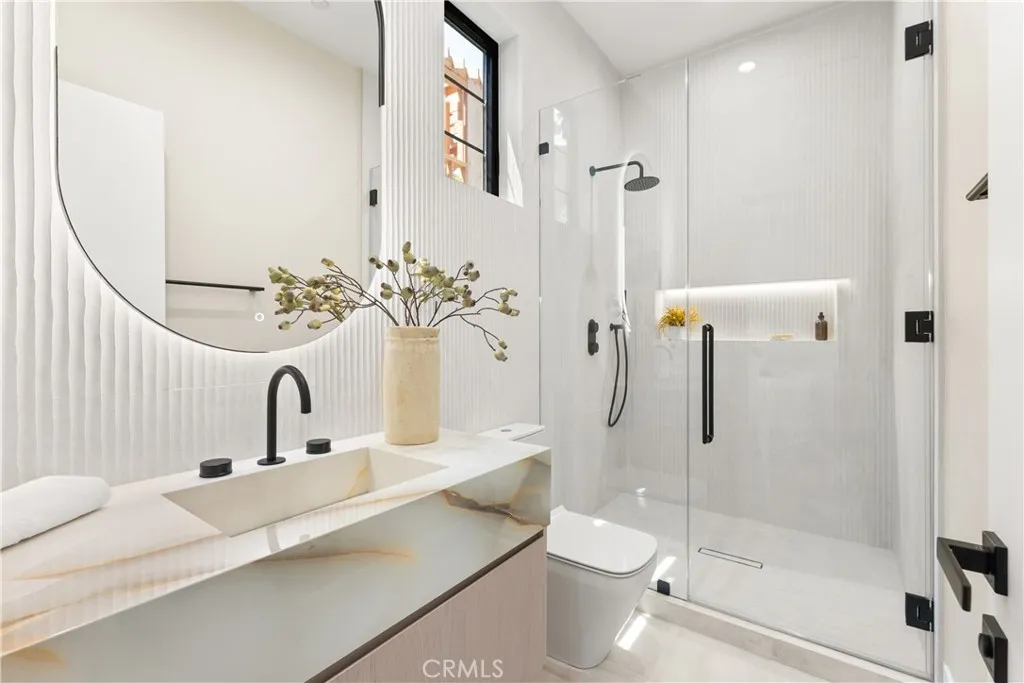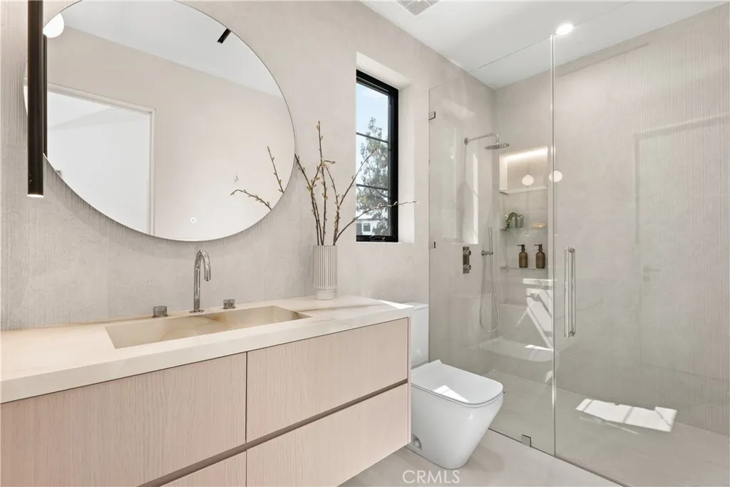 A bold statement in modern luxury living, this brand-new construction home is situated on a quiet tree-lined street in prime Studio City. Showcasing thoughtful design throughout, the bright and airy open-concept floor plan is defined by lofty ceilings and a spacious, flowing layout. At the heart of the home lies every culinary enthusiast’s dream, a designer kitchen equipped with a La Cornue range as its centerpiece, high-end Thermador appliances, a stunning waterfall island and walk-in pantry. The adjacent living room and formal dining area are highlighted by a dramatic fireplace framed by custom built-ins and two oversized sliding glass doors that seamlessly extend your living space outside – ideal for entertaining. Step out to your tranquil backyard retreat and enjoy the best of outdoor living with a sparkling pool/spa, built-in BBQ and plenty of patio space for sun-soaked lounging or al-fresco dining. Upstairs, there are three generously sized ensuite bedrooms and a dedicated laundry room. The primary suite features a private balcony, custom walk-in closet and spa-inspired bathroom, complete with a soaking tub, steam shower and double vanity. Boasting its own private entrance, the attached guest suite offers a living room with a kitchenette and ensuite bedroom with a walk-in closet – perfect for a home office/gym/studio, guests or multigenerational living. Additional highlights include a wine cellar, smart home features (Ring security system, Nest thermostat, Lutron lights), a gated front courtyard and two-car garage. This property is ideally located within the top-rated Carpenter School District and just moments away from Ventura Boulevard’s vibrant shopping and dining scene, the Studio City Farmers Market and so much more.