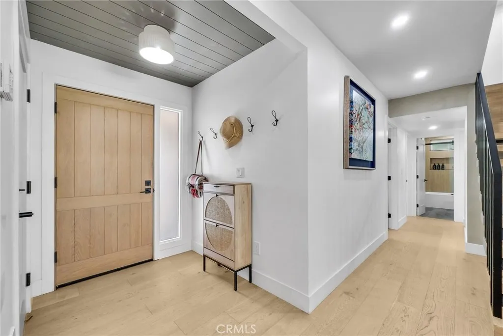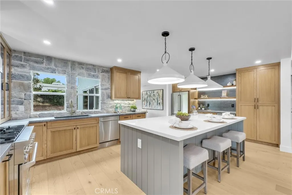 This stunning 4 bedroom, 3 bathroom Dual Master pool home is located on a completely flat half-acre lot at the end of a quiet cul-de-sac. Offering ample space for RV or boat parking, horses, and more. Upon entering the property, you'll be welcomed by vaulted ceilings, abundant natural light, and carefully curated designer finishes. The fully remodeled kitchen features custom oak cabinetry, a large island, stone backsplash, and high end stainless-steel appliances. The home offers two luxurious primary suites—one upstairs with a spa-like bathroom, walk-in closet, beverage center, and new washer and dryer. Another primary is downstairs with a floating double vanity and custom tiled shower. All bedrooms feature wide plank white oak flooring and generous closet space. Step into your resort-style backyard, complete with a newly plastered pool and spa, built-in gas fire pit, covered patio, BBQ island (now converted to natural gas), pool fence, and new wireless pool controller, lights, and pool sweep. The outdoor space has been extensively enhanced with stonework, landscape lighting, a new irrigation system with a smart sprinkler box and timer, new plants, tree removal, and borders around flower beds. Ready for your stables, sport court and other outdoor activities.