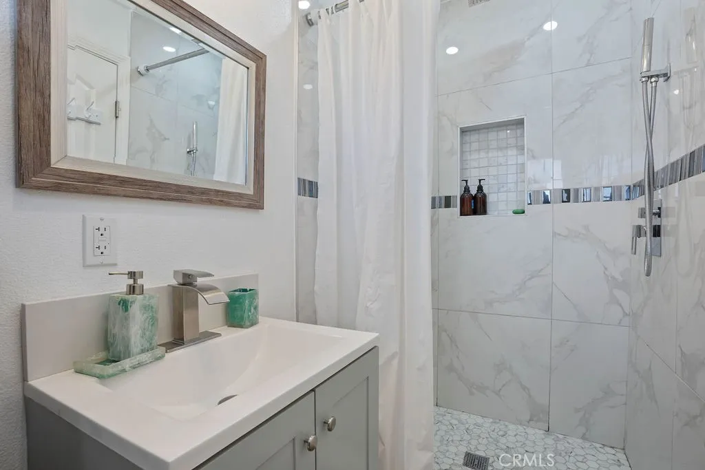 Up for sale is a newly renovated 3 bedrooms, 3 full bathrooms, and a bonus living space which is currently being used as two other bedrooms. Rear entry to a detached garage in the back alley which can accommodate up to 6 vehicles. This home is approximately 1500sqft on a 7300sqft lot and has been remodeled throughout with new roof, floorings, plumbings, drywalls, and many more. It's an ideal for a rental income. Home is located in the best part of Stanton and conveniently located near the new popular Rodeo 39 plaza. Buyers must do all diligent regarding square footage and permit. It's a must see property.