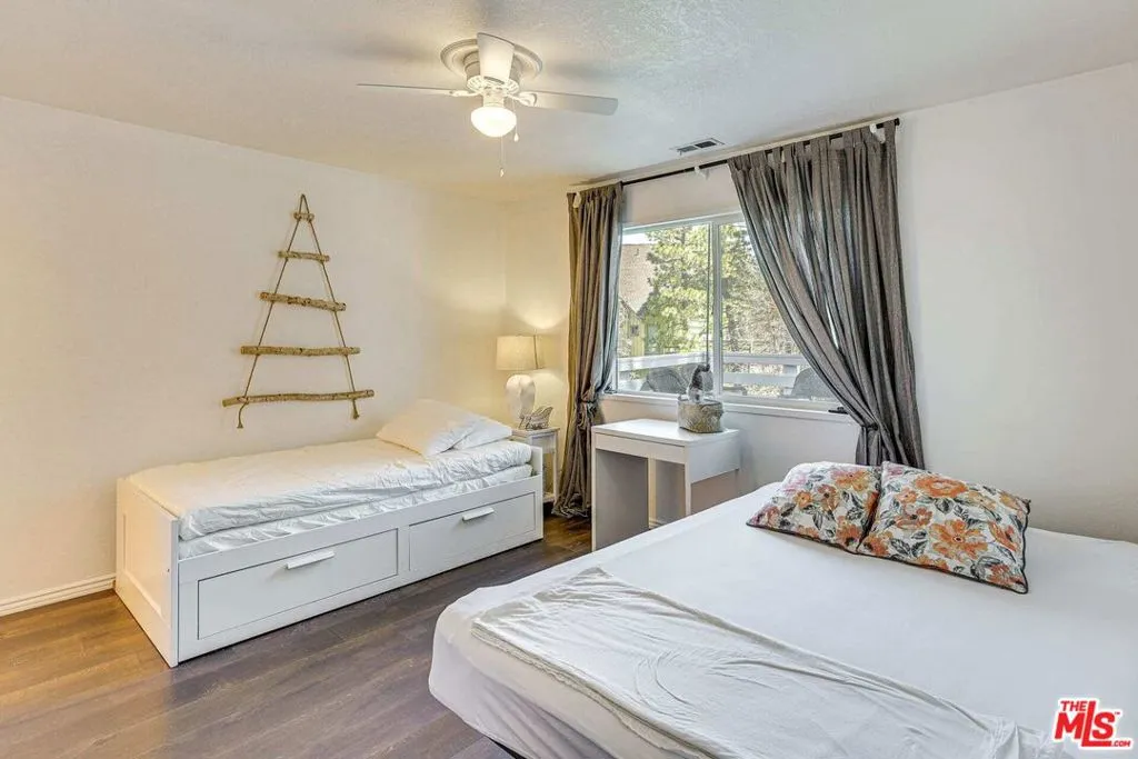 Welcome to this beautiful home, Shady Pines cabin conveniently located in the Arrowbear Lake community which is located half way between Arrowhead Lake and Big Bear Lake. The Two primary bedrooms with ensuite and a separate guest bathrooms, charming cabin has been remodeled beautifully. Just steps away from the park and Arrow bear Lake; this cute and loving home can be the perfect property for your next full-time home or vacation gets away! The property also holds a current STR (Short Term Rental) license which allows the new owner to list the property on sites like VRBO and AIRBnb for short term rental with potential for an investors seeking an income producing property while using it as their own vacation home. This cabin comes with multiple lots (51, 52, 53, 54 and 59) with over15000SF and additional outdoor storage unit with possibility of adding additional dwelling with easy parking for multiple vehicles. Property is also accessible from both Arrowbear Road with direct access to parking and lookout drive. Living room equipped with fireplace for the cozy nights with open floorplan, laminated flooring and a huge front deck to sit out and enjoy the sounds of mountain nature with view of the trees and walk to the lake. A huge separate laundry room with lots of storage space. This home is located within 10 minutes of Snow Valley slope and 20 minutes to big bear lake. Property is equipped with Tesla Charger as well. It is also available for lease $2,500.00 a month including all furnishing as shown.