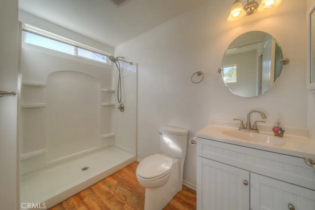 Inside, you’ll find a bright open-concept layout with durable laminate flooring, granite countertops, a tankless water heater, spacious bedrooms, and a convenient indoor laundry room. Both bathrooms are thoughtfully designed with walk-in showers for a clean, modern feel.
