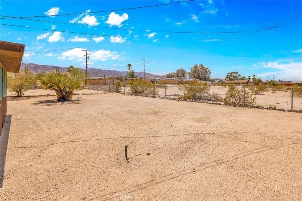 Charming Home in the Heart of 29 Palms! This inviting 3-bedroom, 2-bathroom home spans 1,328 sq ft and offers the perfect blend of comfort and convenience, ideal for first-time buyers or Investors. Step inside to discover a bright, open-concept living space with ample natural light, perfect for relaxing or entertaining. The kitchen with appliance's flows seamlessly into the dining area, while the versatile bonus room offers endless possibilities—think home office, playroom, or cozy den. Retreat to the spacious primary suite, complete with an en suite bath for added privacy. Two additional bedrooms provide plenty of space for family, guests, or rental potential. Outside, enjoy a fenced backyard with a covered patio, perfect for savoring warm desert evenings or hosting barbecues. The attached one-car garage offers convenience and storage, while the low-maintenance lot keeps upkeep simple. Nestled next to 29 Palms High School and just minutes from Joshua Tree National Park, local schools, and a vibrant shopping center, this home combines serene desert living with urban accessibility. Don't miss this turnkey gem—whether you're starting your homeownership journey or seeking an investment property, this home delivers unmatched value in a prime location. Schedule your tour today! Buyer to independently verify all MLS information, including, but not limited to, permits, property use, bedroom/bathroom counts, square footage, school districts, and enrollment availability. Buyer is strongly encouraged to conduct their own investigations and inspections to confirm the accuracy of all information provided.