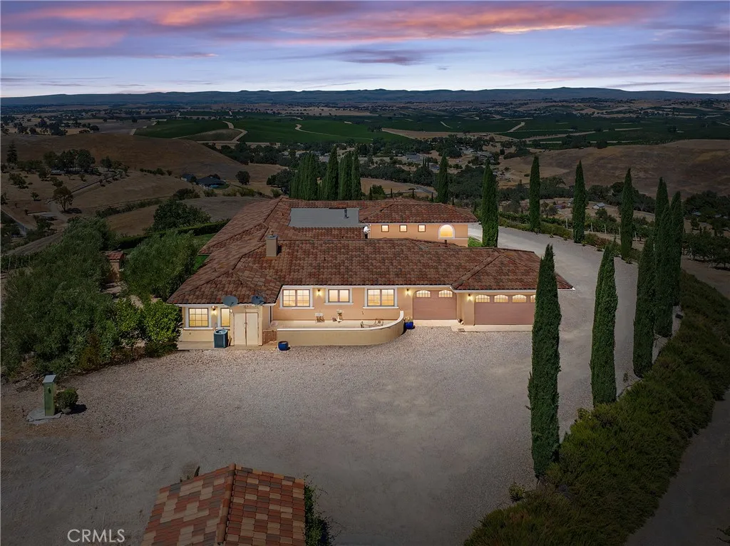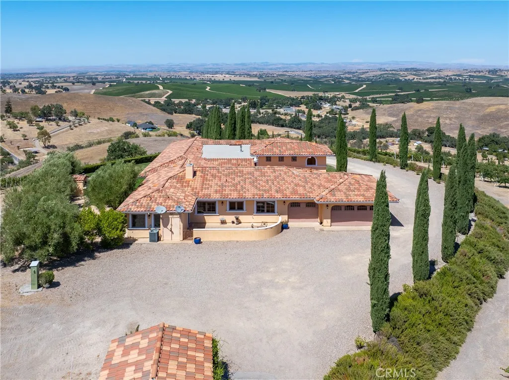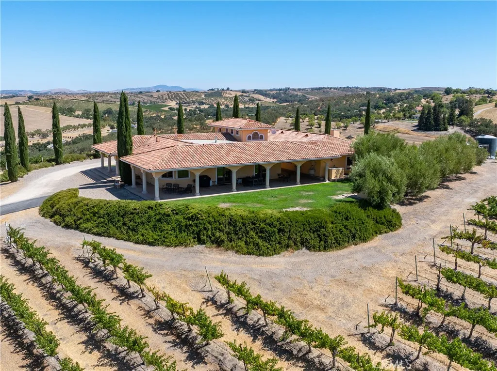 A captivating wine country estate with income-producing opportunities in Templeton. Set on 38± acres with 25± acres of premium Cabernet Sauvignon and Merlot, this property offers multiple potential revenue streams through short-term rentals, private events, and viticulture. Two custom homes span approximately 5,000 sq. ft. The luxurious Tuscan-inspired main residence features 4 bedrooms and 4 bathrooms, while the second home, built in 2000, offers 2 bedrooms and 1.5 bathrooms. Ideal for guests, caretakers, or vacation rental use. Both homes are on a single parcel, with a second parcel included in the sale. Gated and private, the grounds feature sophisticated design details, hand-painted murals, and remarkable vineyard views. Multiple patios and fountains provide a tranquil setting for elevated indoor-outdoor living. Previously operated as an in-demand wedding venue and short-term rental, this is an extraordinary chance to experience the best of wine country living while building long-term value in Templeton.