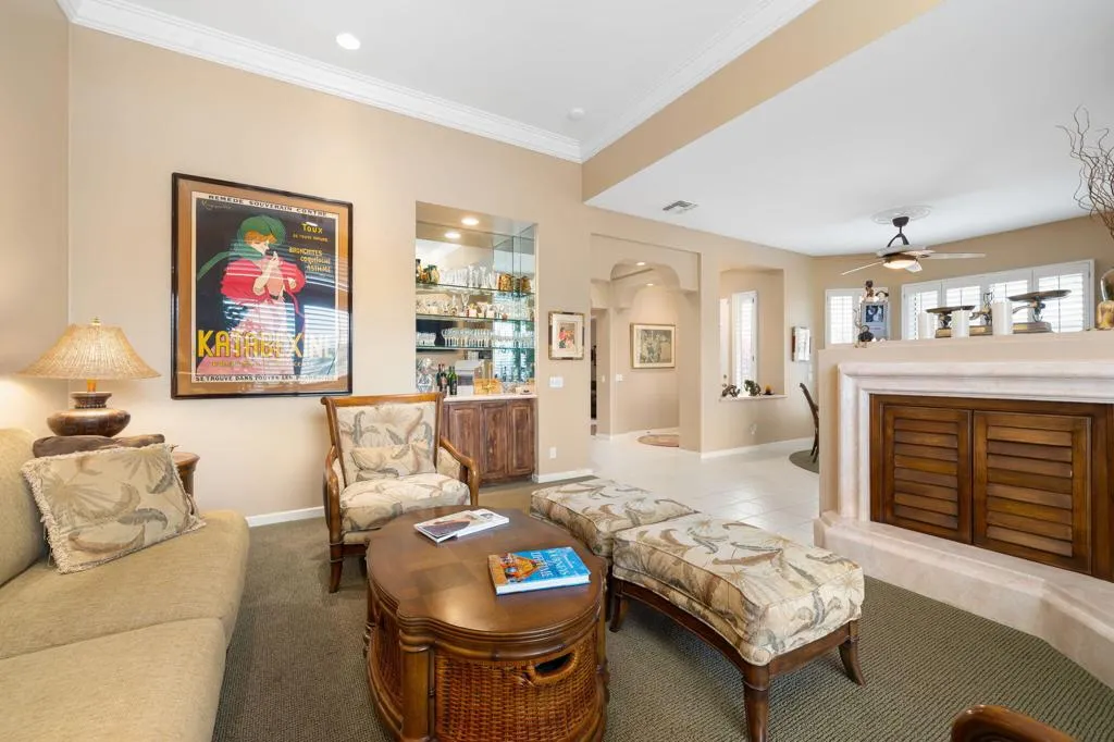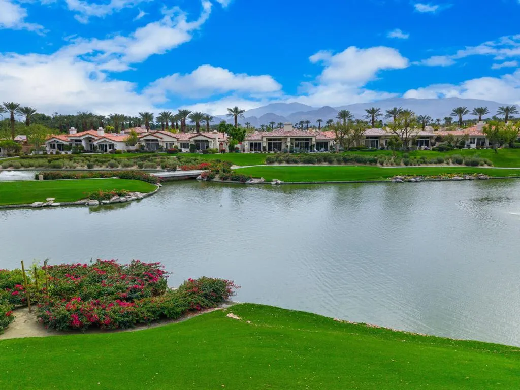 South Lake Views + Private Spa! CLUB Membership available to Buyer - no wait. This lakefront Acacia 4 condo has a covered patio with private spa, and expansive mountain and course views of #7 Grove. Offered Furnished per Inventory, this 3 bedroom/3.5 bathroom Indian Ridge CC condo is beautifully maintained! The Living room opens out to the patio and spa area, and is accented with crisp white shutters, built-ins, fireplace and wet bar. Fabulous views also from the kitchen and breakfast nook, which open to the patio with builtin BBQ, and features stainless appliances and island. The separate dining room is adjacent to the living room - ideal for ease of entertaining. Primary suite has a private patio area, bath with tub & shower, double vanities, and a generous walk in closet. Both guest bedrooms are en suite - the front guest suite is currently used as a den. The attached 2-car garage has direct access in to the house via the laundry room. Great location - just a few houses away from two of the many community pools & spas, and around the corner from ''Rover's Ridge'' dog park. HOA monthly dues include security, cable & internet, all gardening, exterior paint, roof maintenance, exterior water, exterior pest control and trash. Indian Ridge CC features two Arnold Palmer Signature golf courses, tennis/ pickleball facilities, a fitness center, a full-service spa, two restaurants, 38 community pools/spas & active social calendar. Come Join the Fun!