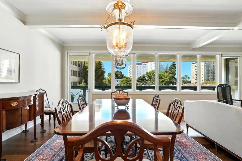 Experience upscale living in this beautifully appointed luxury condominium, ideally located within walking distance to San Mateos finest shopping, dining, and entertainment. Now offered at a newly reduced price, this home presents an outstanding opportunity and one of the best values per square foot. Residents enjoy exceptional amenities including chef-prepared meals, weekly housekeeping, a library, game room, indoor heated pool and Jacuzzi, plus a rooftop garden with panoramic views, walking track, and putting green. Inside, expansive windows flood the home with natural light. The kitchen features granite countertops, abundant cabinetry, and generous counter space. The primary bathroom offers tile floors, a marble dual-sink vanity, and walk-in shower, while the second en-suite includes a soaking tub and marble countertop. Brand-new carpet in the bedrooms and family room complements hardwood floors throughout. Elegant millwork, built-in cabinetry, and a custom bookcase add refined character. One of the largest balconies in the building provides an ideal space for outdoor dining and entertaining.