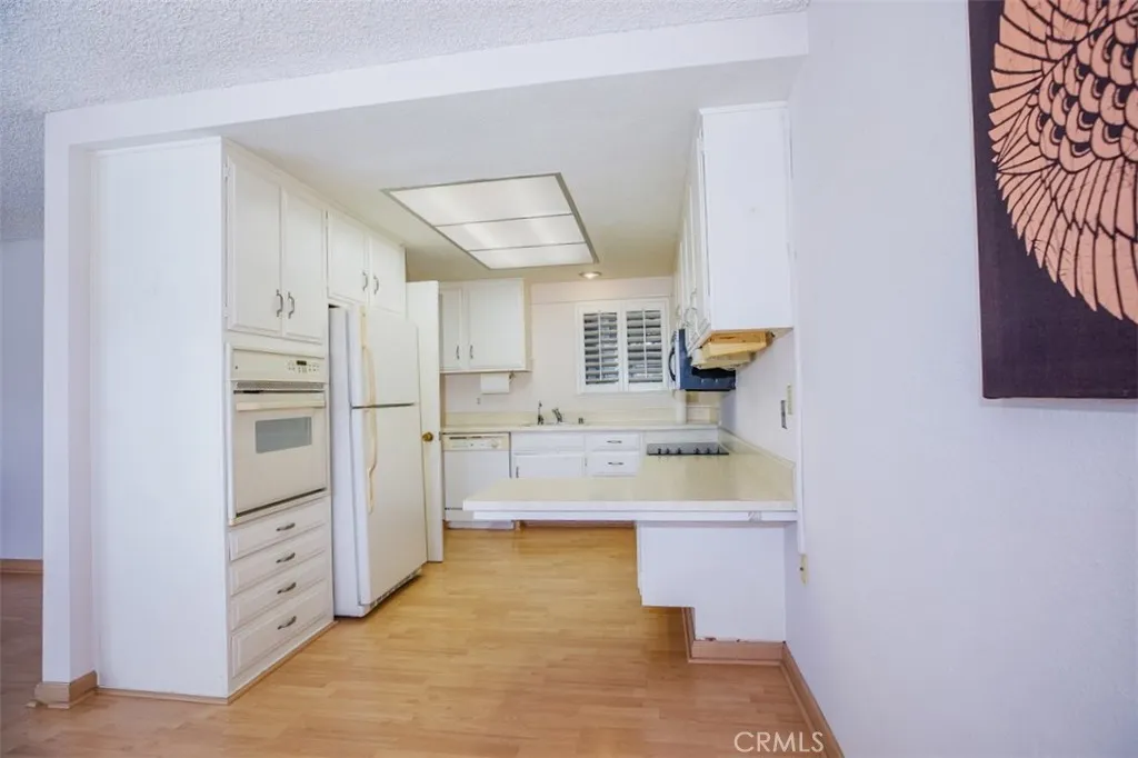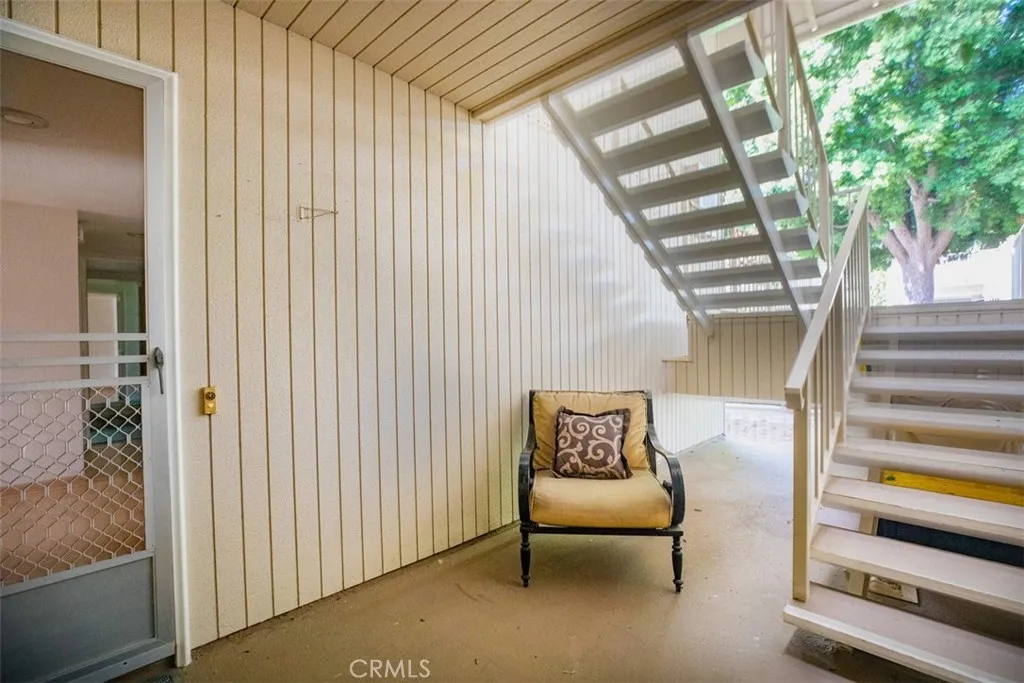 There are 8 steps down to the entrance and inside the home gives you ample space with a large living area, a separate dining room, two bathrooms and two well-proportionated bedrooms. The kitchen has a window facing the entry and an open side facing the dining area and balcony. The unit has Plantation shutters and stack washer/dryer that is conveniently located in the hall closet. (included) The spacious living/dining area has a gas fireplace and windows and slider facing out to the long balcony.