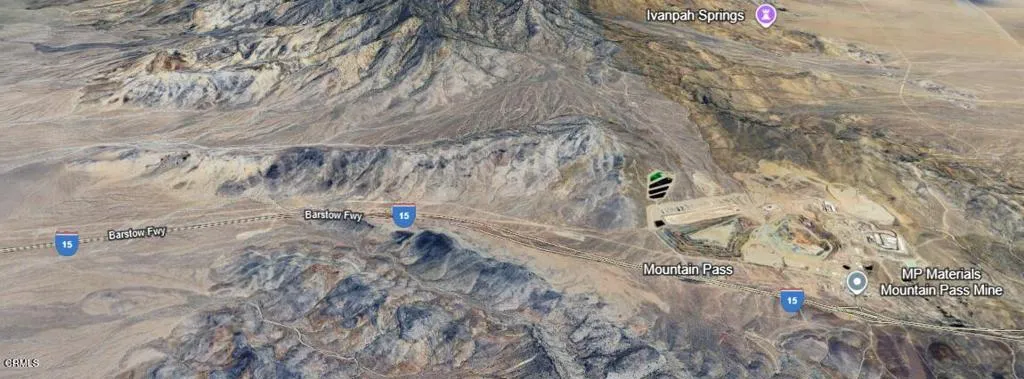 123.96 Acre of Industrial Zoned Land just off the 15 Freeway at Cima Road Off-Ramp, about 24 miles from State Line. Being near the State Line makes it the closest Industrial location in the state for the Southern California consumer market. High demand location for Solar Farm, Logistic Companies, Distribution Warehouse, Fulfillment Center, Trucking Operations, Supply Chain Businesses, Manufacturing, Data Center and Maintenance Yard. Strategic Hub location with direct access to the I-15 Frwy for Amazon, Walmart, FedEx and UPS.Ideal for Heavy Industrial and Manufacturing due to its remote location from other structures and close to the 15 Frwy. The size of this property is approximately Half a Mile wide by One-Third of a mile deep. 15 Freeway is planned for Brightline West, the Las Vegas to Southern California High Speed train. The 15 Freeway is a little over half a mile to the south. Property is 24 miles from Baker, 24 miles from Stateline and 75 miles from Las Vegas. It is across the freeway from the Cima Mining Company Gas Station at 65845 Cima Road, Nipton CA 92364. (CimaMining.com)The MP Materials Mine (mpmaterials.com) is located 5.7 miles east a Rare Earth Mine at 67750 Bailey Road, Mountain Pass, CA 92366.Also, included with this property is Mohawk Mine, a historic, inactive, but not an abandoned Mine. Since the 1950's Mine has been known to mineral collectors as a source of interesting arsenates of zinc, cooper, and lead.The owner and broker make no representation or warranties concerning the feasibility or likelihood of restarting mining operations at the property. The property is being sold in its present condition, as is and as disclosed. To see property contact listing broker, there are open shafts, property is very dangerous, do not trespass.