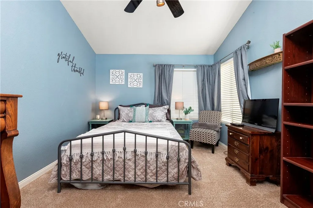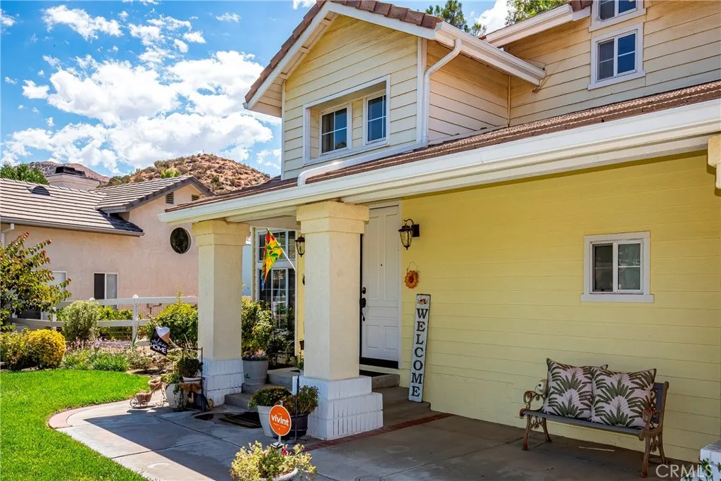First time on the market! Welcome home to this gorgeous, upgraded, well cared for, custom two story home, with 5 bedrooms, 3.5 bathrooms (main living quarters), a separate upstairs garage apartment/open loft concept with another full bathroom, on beautifully landscaped acreage, with flat equestrian property, RV access for all your toys, a 3 plus car garage, completely fenced in the back, on a cul de sac, nestled against the rolling hills in the sought after Sterling Ridge tract in Acton-is an absolute must see! Walking up the long driveway, you soak in the true beauty of this property. Stepping into the home from the outside, you are greeted by wooden double doors, and a large, tiled entry way that flows seamlessly down the steps to the first floor. You are welcomed by natural light, tall, vaulted ceilings, spacious rooms, new carpet and new luxury vinyl plank flooring in all of the bathrooms. The grand foyer flows into the open living room, with a fireplace that leads into the formal dining room, all great for entertaining. Moving into the heart of the home, is the showstopping kitchen with custom granite countertops, center island, warmly stained soft closing cabinetry with new hardware, wood planked tile flooring, upgraded stainless steel appliances that open up to an informal dining area, and a spacious family room with another brick fireplace for those cool desert days and nights. Downstairs also has a master/primary bedroom (or a home office space) with an attached full bathroom, there is also a half powder bathroom and ample sized laundry room, cabinets for more storage, a utility sink, and built-in laundry chute from the upstairs. Transitioning to the upstairs is the lovely staircase with wooden railing that takes you to the landing of the second story. The sprawling master bedroom greets you at the top of the stairs with double doors, vaulted ceilings, and fireplace. There are two walk in closets as you lead to the master bathroom ensuite with dual sinks, new sink faucets, walk in shower and large soaker tub. Down the hallway, there are 3 more good sized bedrooms and a full hall bathroom. Enjoy spring and summer days in this backyard paradise! Stepping outside onto the back patio, into the stunning oasis in the desert, be entranced by the sweeping views, lush green grass that seems endless, mature trees, plants, flowers in bloom as far as the eye can see.