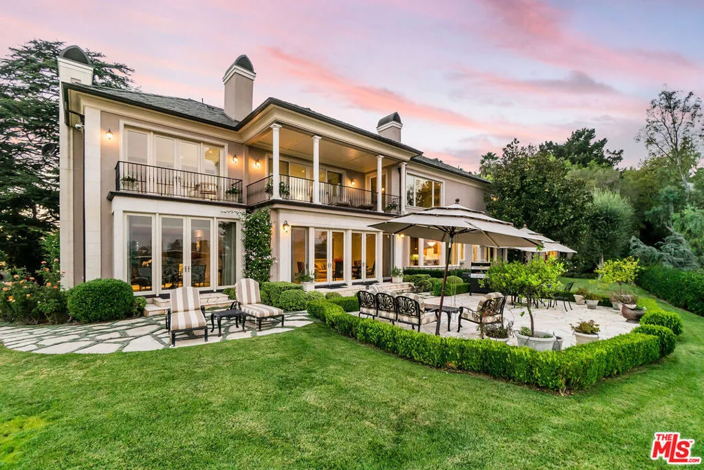 LUXURY PROPERTY AUCTION: 1-13 May. Accepting starting bids through 30 April. Starting bids expected between $6M-$9M. Earn an incentive by 30 April. Positioned on nearly 500 feet of frontage on Bel Air Road, this private, gated estate rests on more than an acre of pristine grounds, offering sweeping views of both canyon and city. Guests are welcomed into a formal foyer defined by soaring ceilings, a wrought-iron staircase, and abundant natural light from floor-to-ceiling windows. The formal living and dining rooms boast custom wood paneling, elegant hardwood floors, and French doors that open to expansive outdoor entertaining areas. Upstairs, the master suite features dual marble bathrooms with one that includes a soaking tub and opens onto a generous balcony overlooking tranquil canyon and cityscapes. The outdoor amenities feature a detached guest house with its own kitchenette and bathroom, verdant lawns, a lagoon-style pool, and meticulously landscaped gardens that enhance both beauty and privacy.